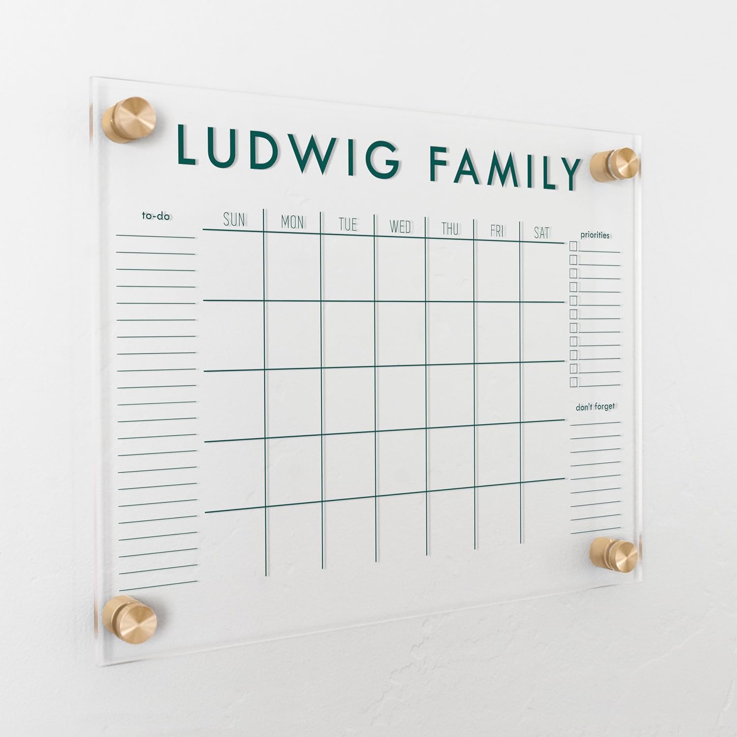 Personalized Clear Acrylic Calendar for Wall, Calendar Whiteboard for Wall, Dry Erase Wall Calendar, Wall Calendar Organizer System for Home (Block, Jade, 14"W x 11"H)