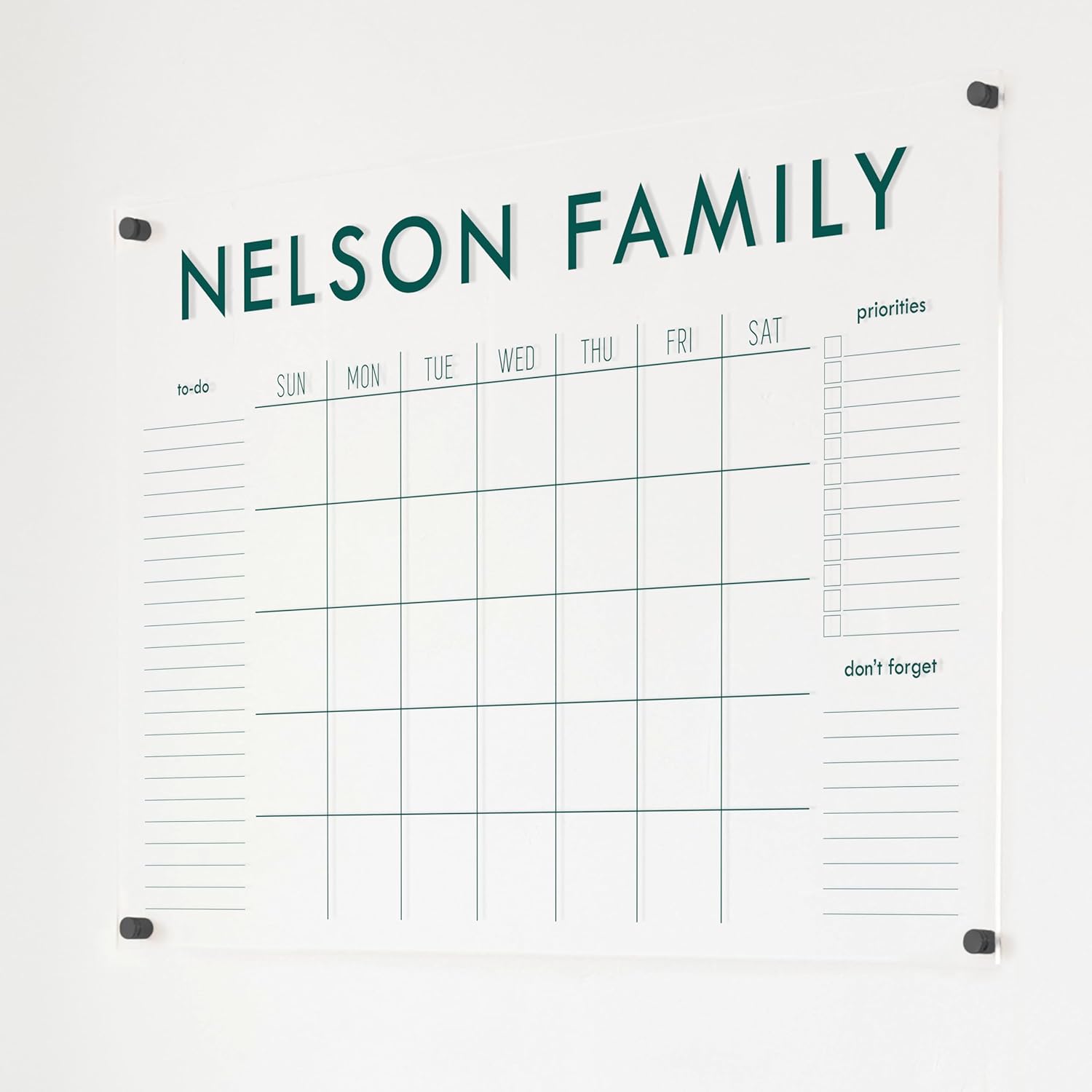Personalized Clear Acrylic Calendar for Wall, Calendar Whiteboard for Wall, Dry Erase Wall Calendar, Wall Calendar Organizer System for Home (Block, Jade, 38"W x 26"H)