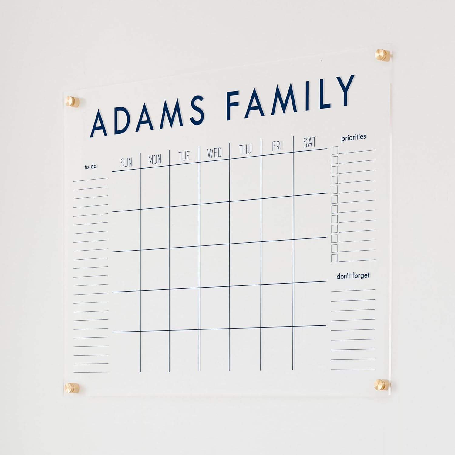 Personalized Clear Acrylic Calendar for Wall, Calendar Whiteboard for Wall, Dry Erase Wall Calendar, Wall Calendar Organizer System for Home (Block, Navy, 31"W x 23"H)