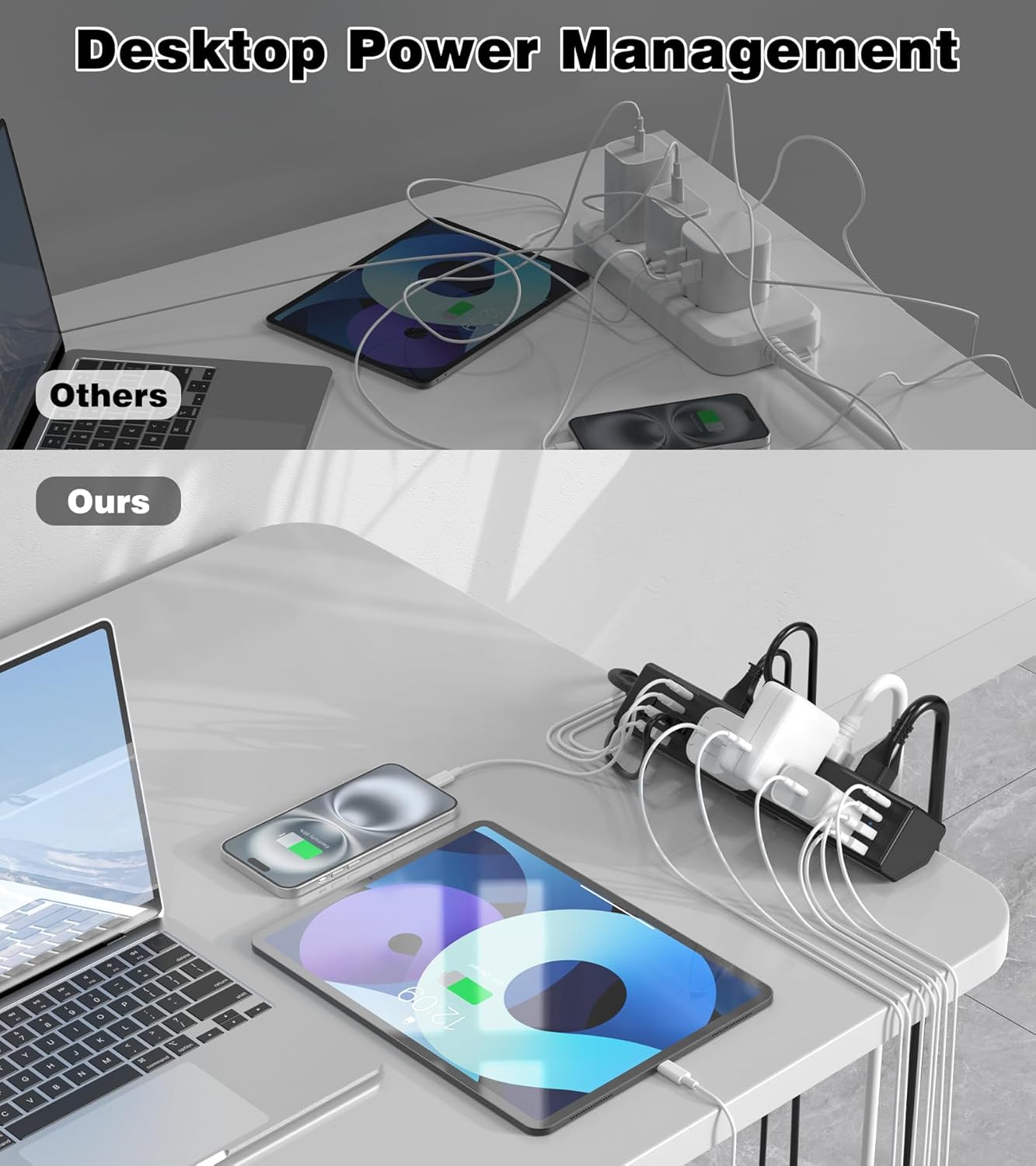 - 【Desk Clamp Power Strip with Surge Protection】Constructed from fire-resistant ABS plastic, this power strip offers a 1200-Joule surge protection rating with a built-in circuit breaker to guard against overloads, short circuits, and overheating. Effectively handles voltage spikes to keep your computer and other accessories safe.