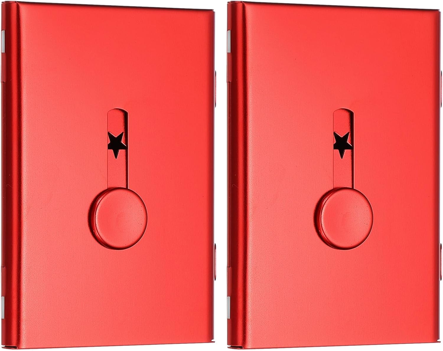 PATIKIL 2 Pcs Business Card Holder, Thumb Drive Business Card Holder Portable Business Card Holders Alloy Slide Out Card Case for Business Meeting, Red