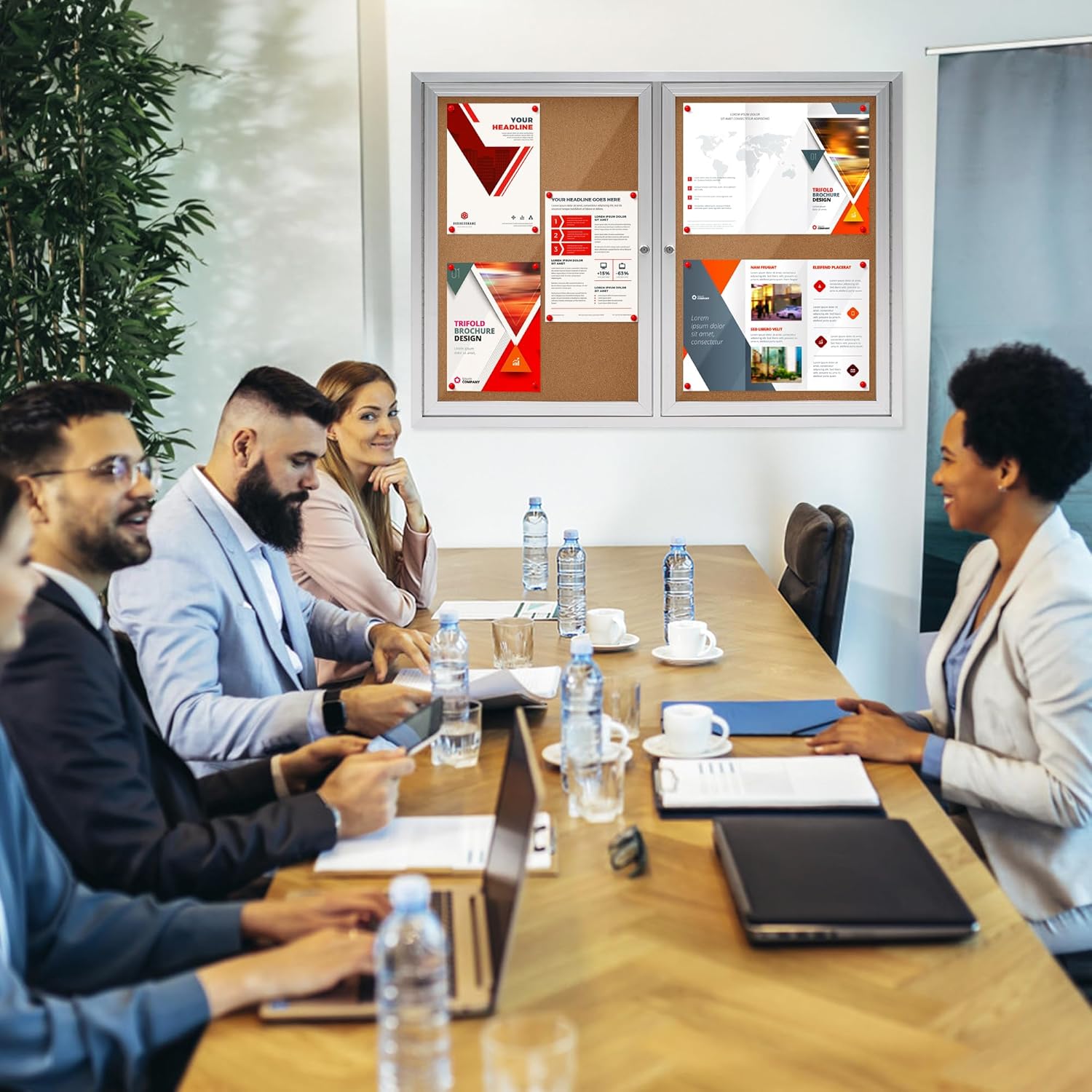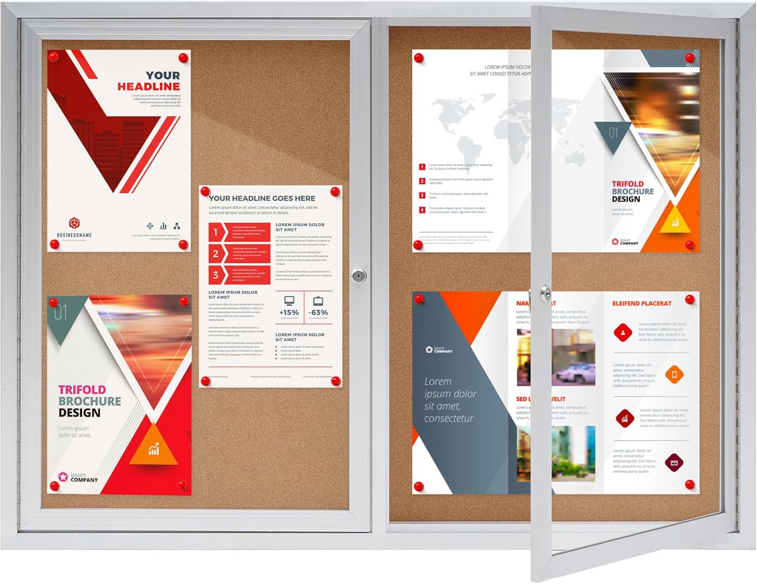 - High Quality Details:Premium cork,Anti-scratch finished aluminum frame,waterproof design,lockable glass door &key mechanisms,This enclosed bulletin board will add a timeless look to office or school