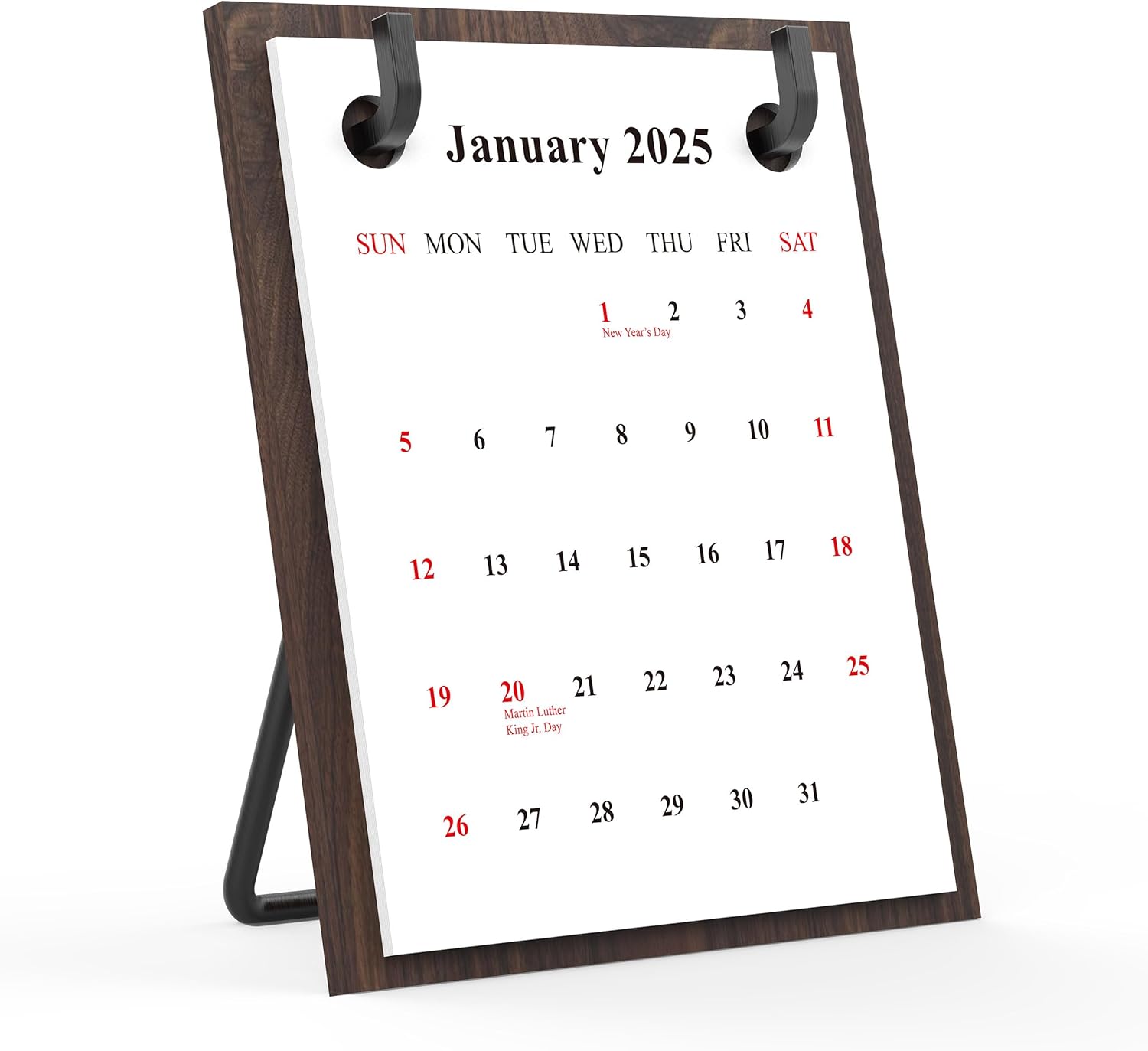 2025 2006 Retro Desktop Calendar Tabletop Decoration Calendar Walnut Wood Calendar with Iron Brackets Suitable for Office Business Home (Black Walnut)