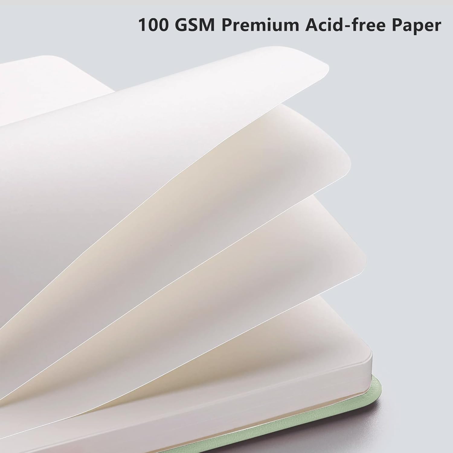 - PREMIUM PAPER: Crafted with time-resistant 100 GSM paper, our blank journal notebook preserves thoughts flawlessly while resisting ghosting/bleed-through with most pens. Acid-free material ensures long-term preservation, and its smooth surface enhances writing clarity - blending durability and premium performance