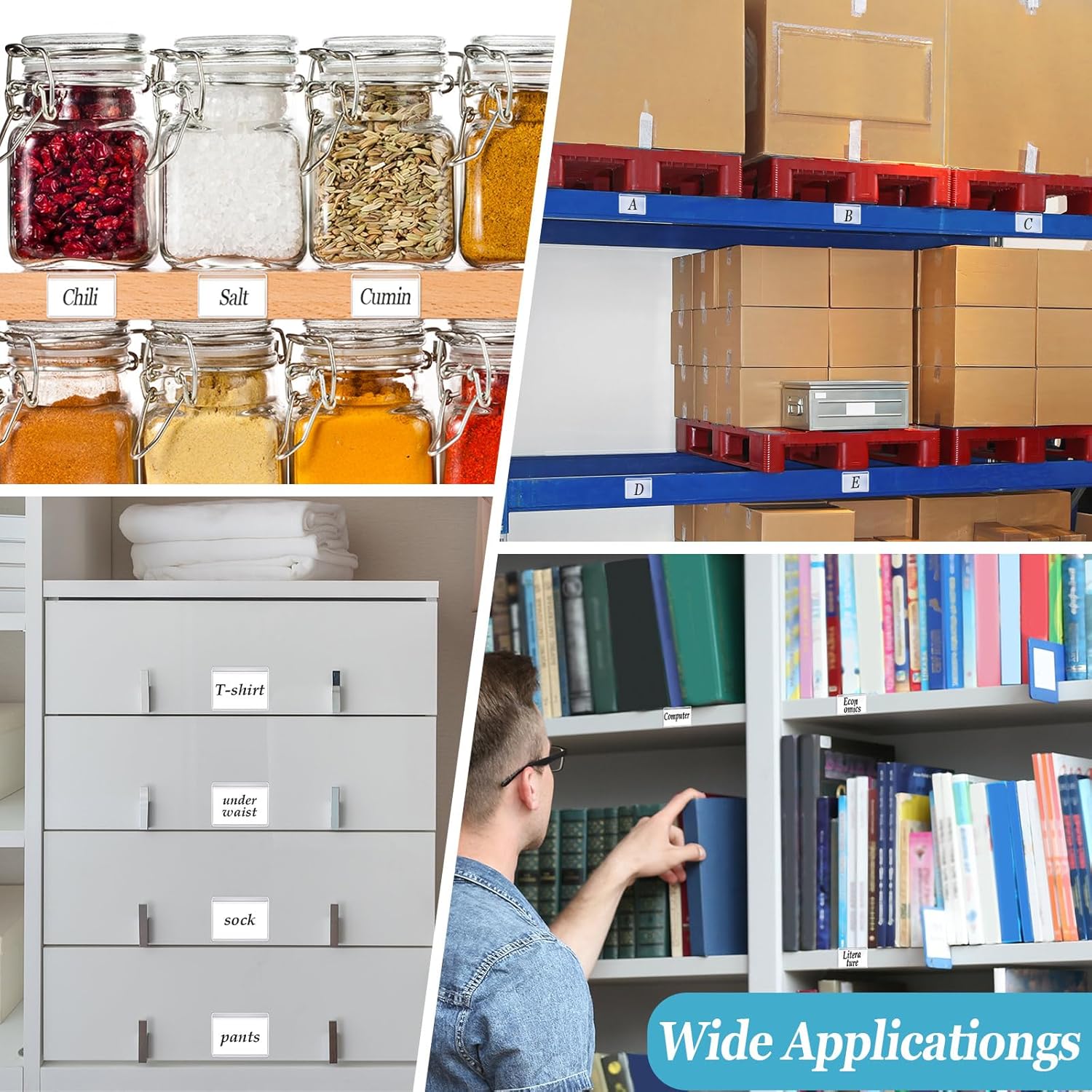 - Convenient to Use: plastic label holder is designed in transparent color with self adhesive back, so you just stick the label holder anywhere you want and put the appropriate label paper into the plastic label holder, then you can easily sort the items