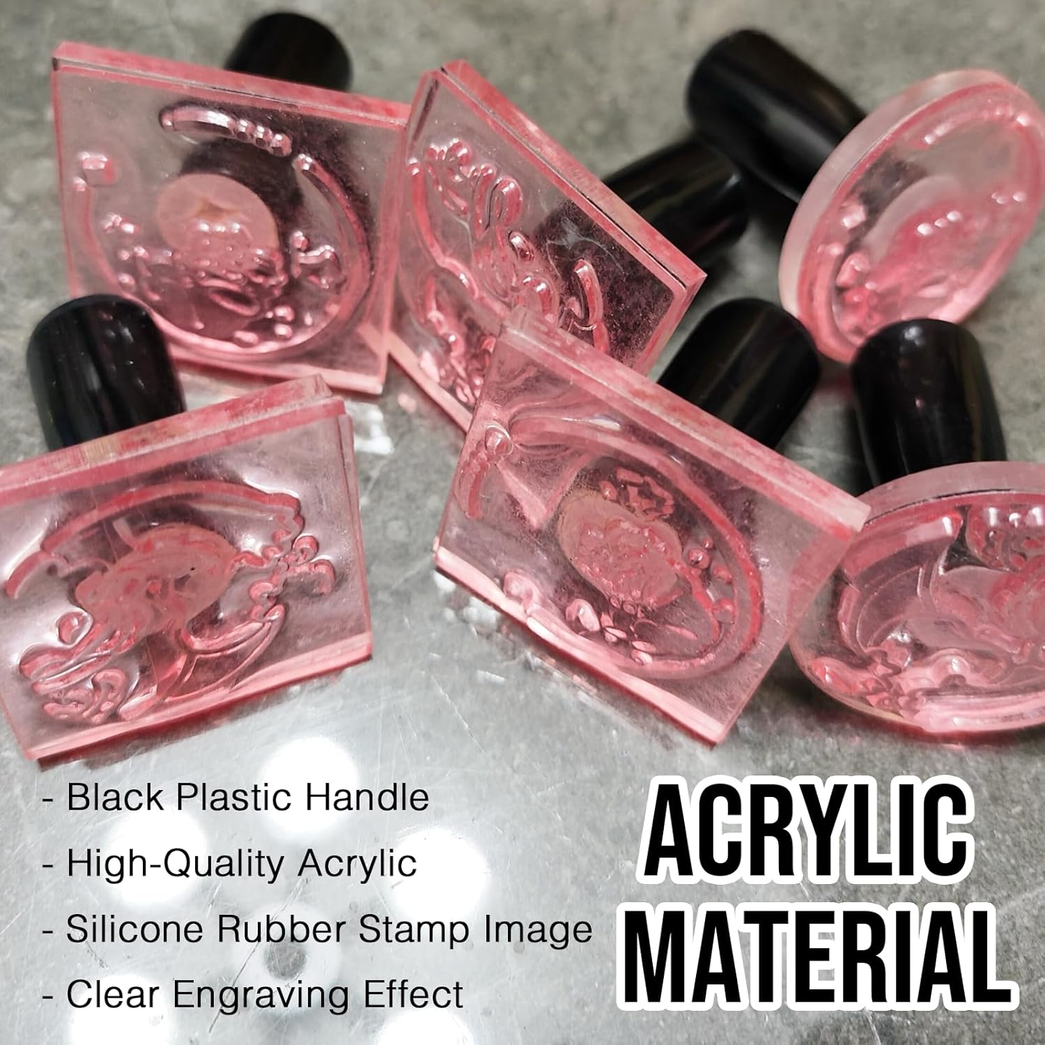 - Premium Material Options: Experience exceptional quality with our custom stamps. You can choose between rubber stamps mounted on sturdy maple wood for a classic feel or sleek acrylic stamps with comfortable plastic handles for a modern touch. Our stamps are designed for both personal and professional use, ensuring durability and outstanding performance with every impression