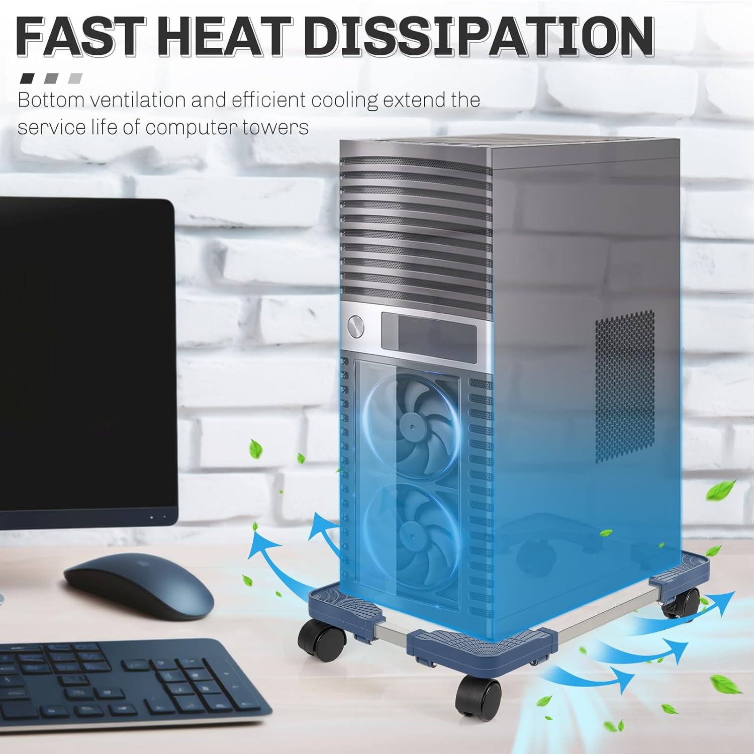 - Ventilation and Heat Dissipation: The pc stand for floor increases the distance between the computer tower and the ground. the open bottom design can ensure air circulation, ensure ventilation and heat dissipation of the computer tower, and increase the use time of the computer tower.