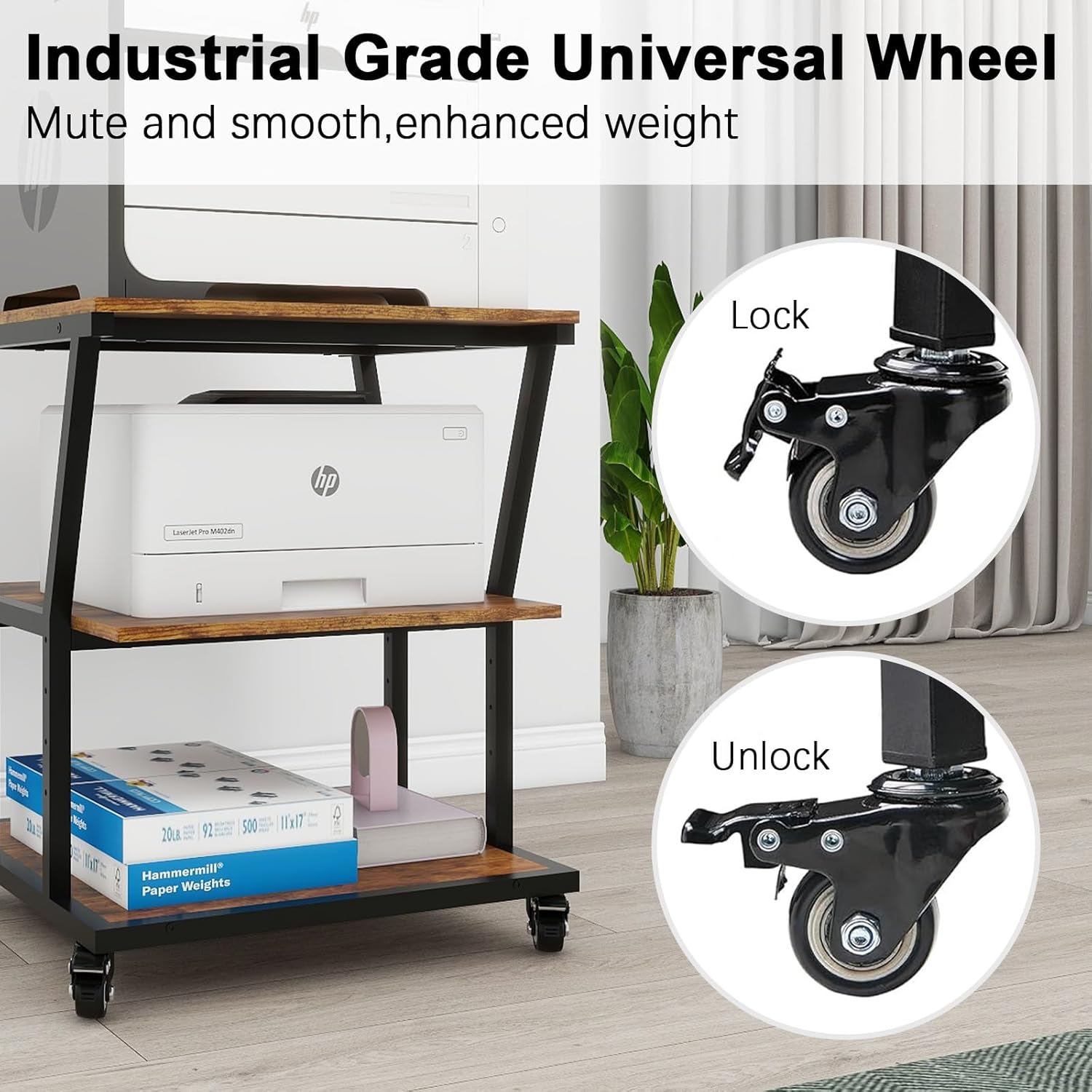 - 【With Industrial Grade Wheels】 The Printer Table is equipped with four lockable industrial grade wheels to support high load-bearing, it can rotate 360 degrees to move smoothly and quietly, also can be locked to keep in position and stability.