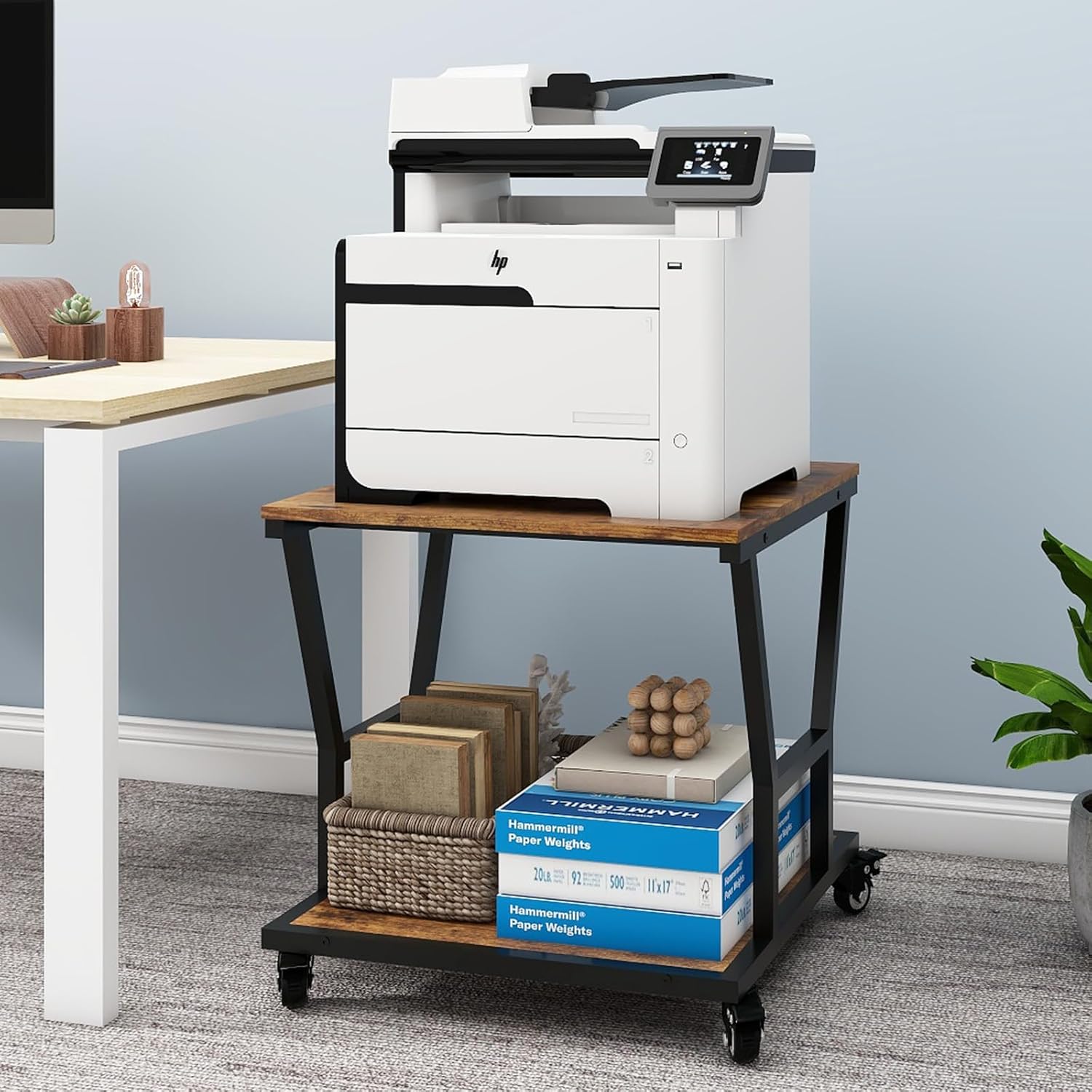 Natwind 2-Tier Large Printer Stand,23.6"x23.6"x29.5" Heavy-Duty Printer Table Cart with Paper Storage Shelf & Wheels,Ideal for Home Office Laser Printers, Copiers (Retro)