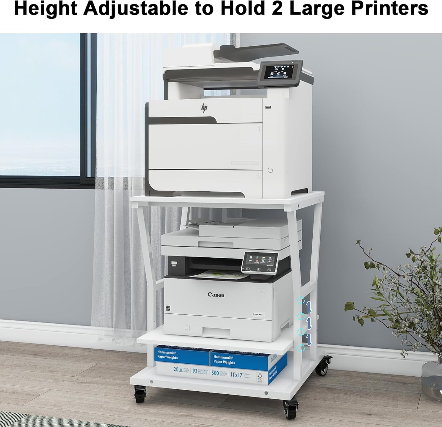 - 【Large Printer Table】The table top size is 23.6"W x 23.6"D, designed specifically for large size printers,scanners, 3d printers, and other heavy electronic devices. The second shelf is adjustable to hold another large size printer as well, or you can choose to store other office supplies.