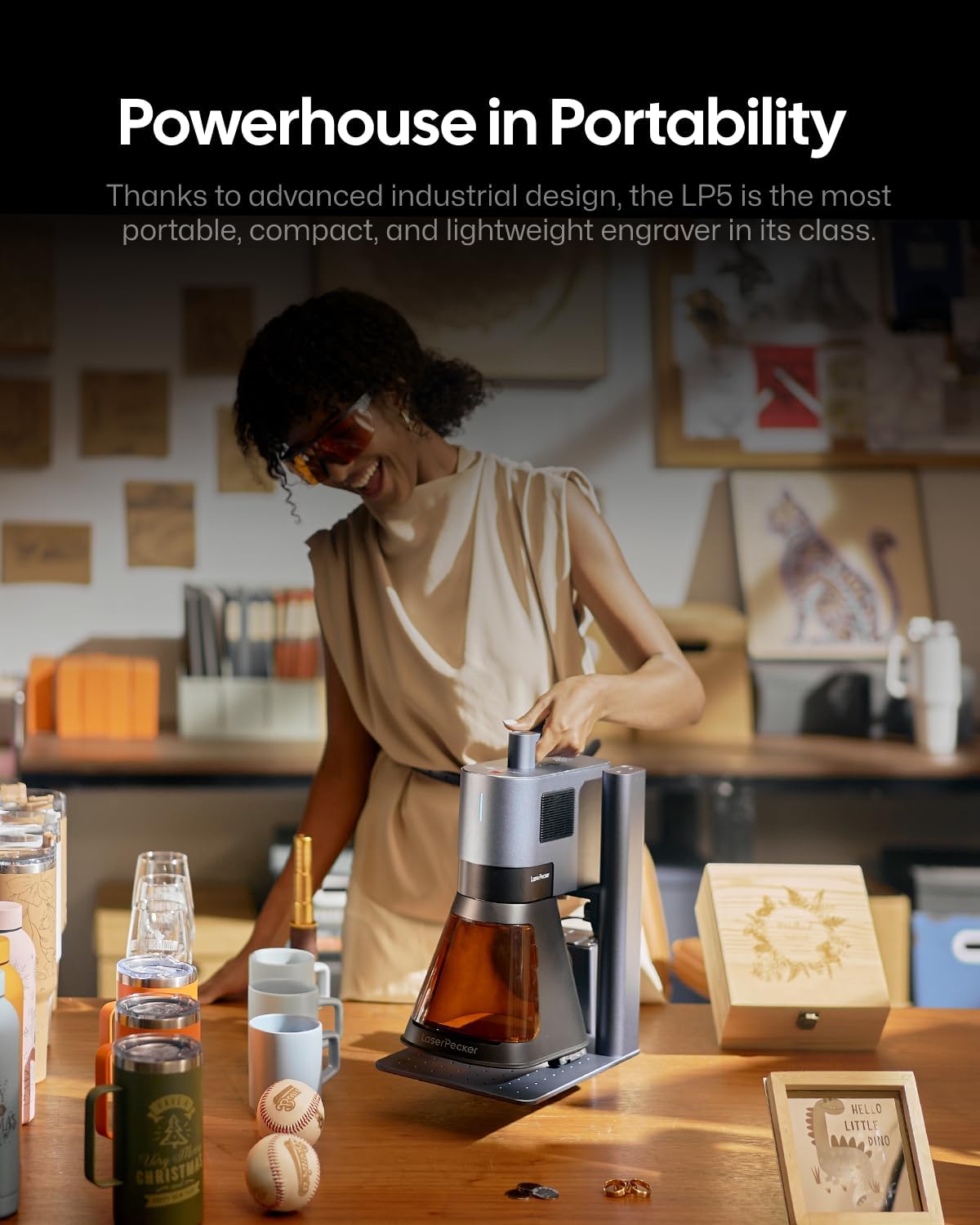 LaserPecker LP5 20W Fiber & Diode Dual Laser Engraver, 10X Faster 0.0027mm Precision for Metal Wood Jewelry, 3D Grayscale & Color Engraving, Portable 6kg Laser Cutter for Instant Store Customization