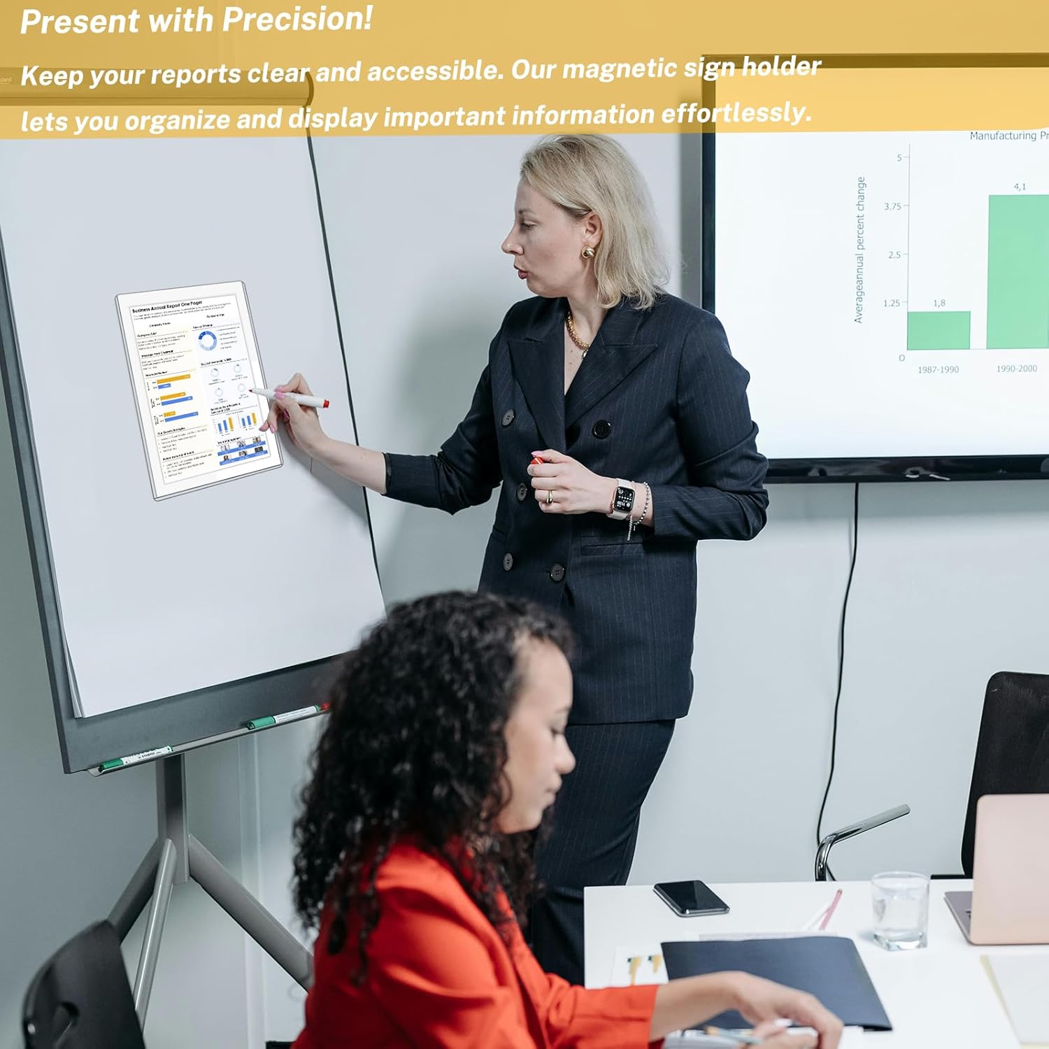 - More Stability: this plastic wall sign holder is further improved with upgraded, wider magnetic strips and adhesive strips that provide more stability and prevent any unwanted slipping