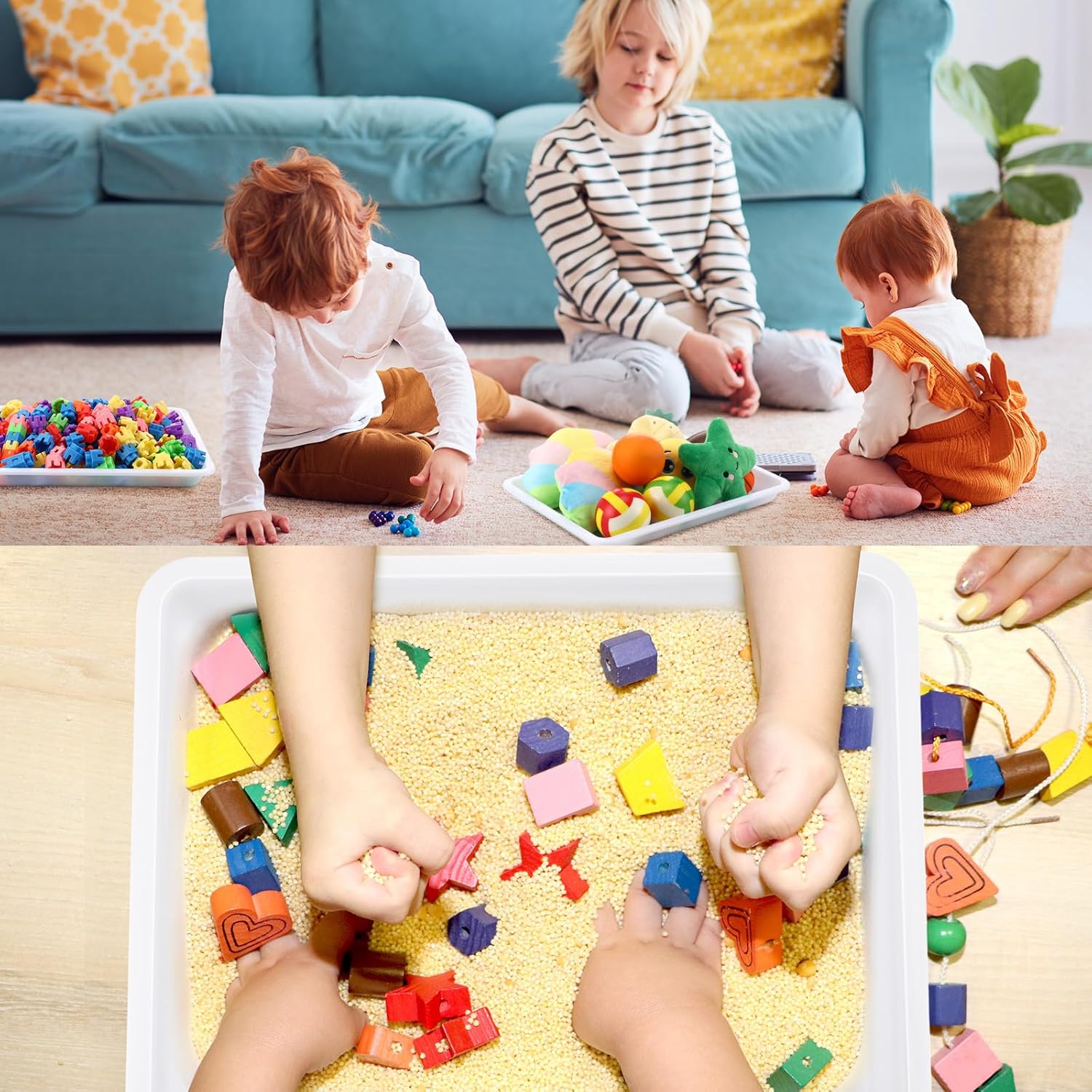 Maitys 24 Pcs Plastic Art Trays 11 x 8.7 x 1 Inch Activity Craft Tray Organizer Serving Tray Stackable Storage Sand Trays for School Painting Beads Crafts DIY Projects(White)