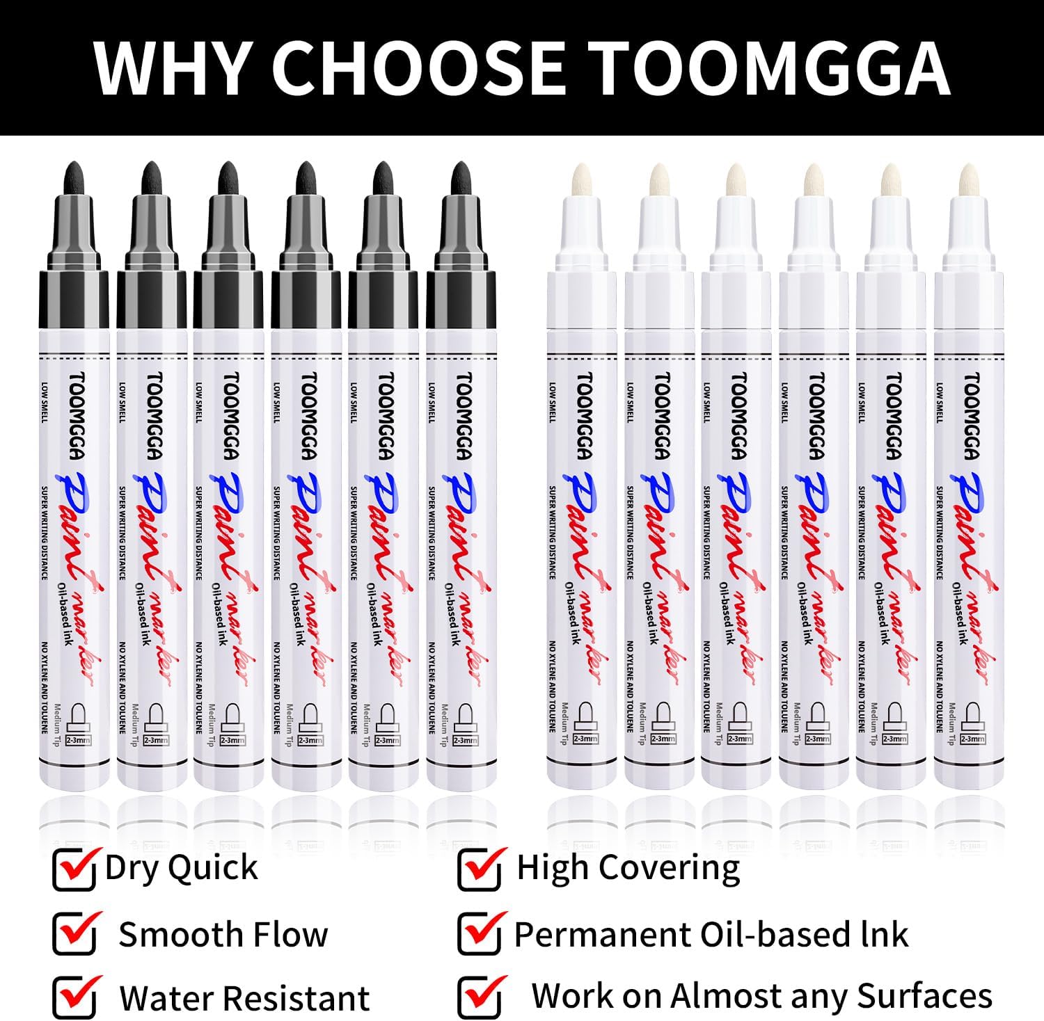 - Premium Quality: Each white & black paint pens paint markers is independently tested, selected, and packaged in individual heat shrink film. Before use: Face tip upright,push against finger. Re-cap and shake. Press tip on surface several times