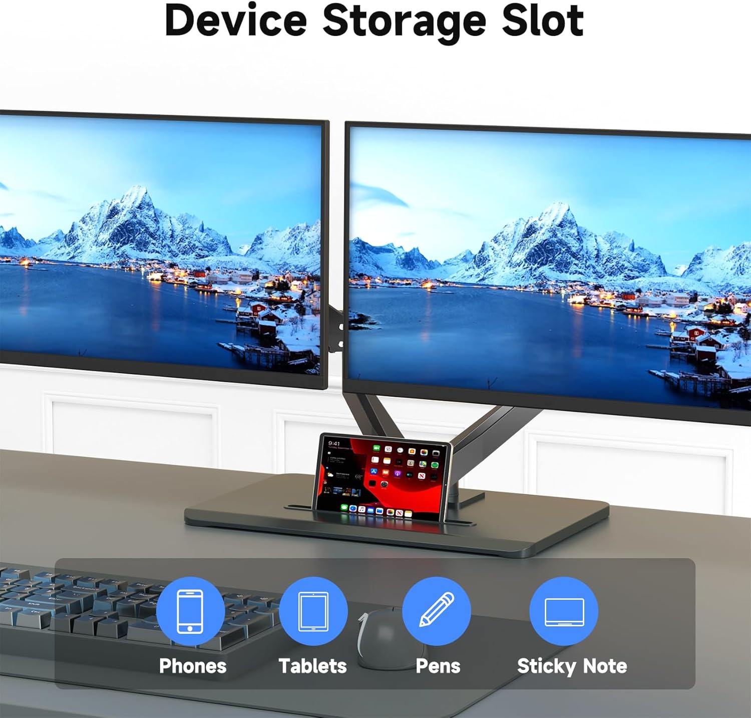 suptek Dual Monitor Mount Gas Spring Monitor Arm Desk Stand with Base,Free Standing Pneumatic Height Adjustable Monitor Stand for 17 to 32 inch,Holds up to 22 lbs,Black(ML8SP)