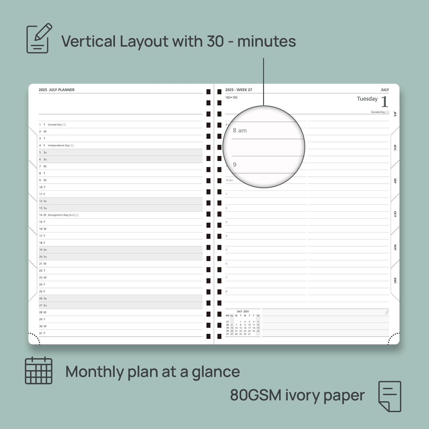 - One Page Per Day Even Weekends: This daily planner (July 2025-June 2026)features 365 daily pages,which presents spacious everyday planning with hourly schedules for your appointments, which makes your busy daily routines organized.