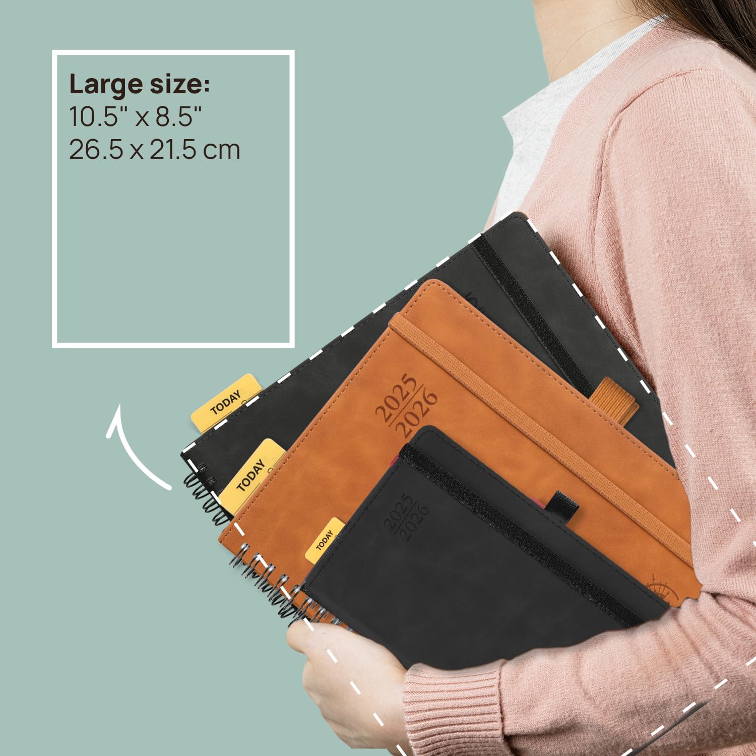 POPRUN Planner 2025-2026 Weekly Planner Notebook (Large 8.5''x 10.5'') Academic Calendar (JUL.25 - JUN.26) Appointment Book with Monthly Tabs, Spiral Soft Cover, Inner Pocket, 100 GSM - Claret