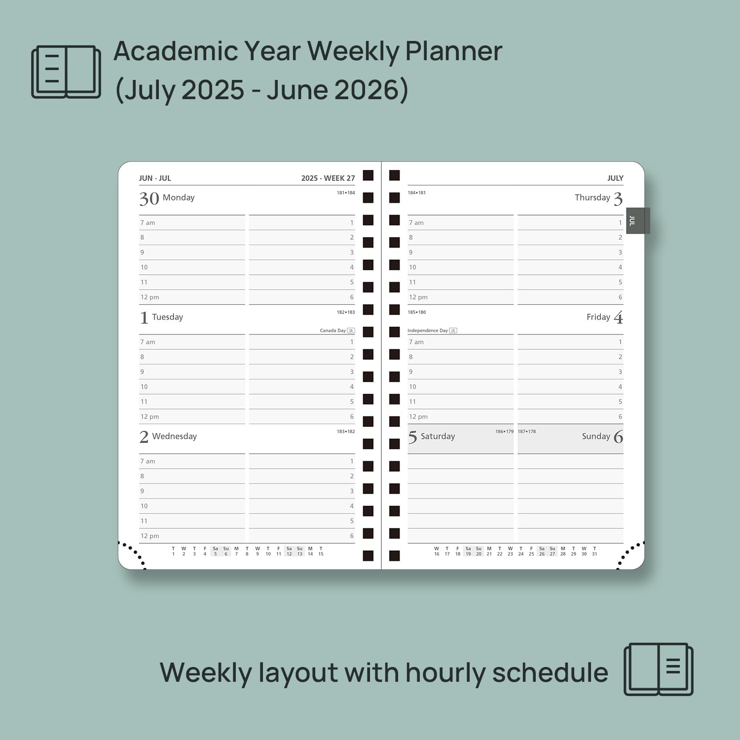 - PORTABLE POCKET SIZE - A compact 4" x 6.25" design that fits seamlessly into your purse or pocket, ensuring it’s easy to carry and use on-the-go. Tailored to align perfectly with students’ academic schedules from July 2025 to June 2026.