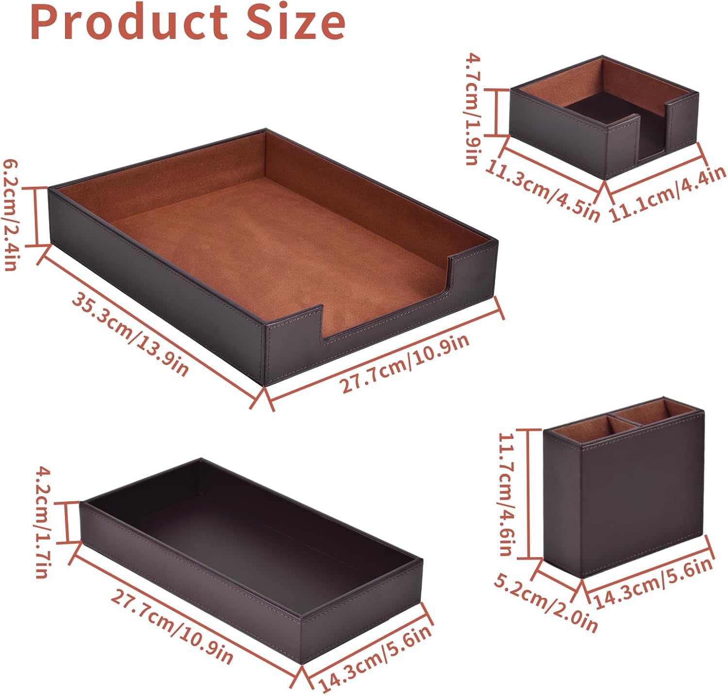 4 Pack Leather Office Supplies/Desk Organizer for Letter Paper Tray,Sticky Note Holder,Pen Cup,Stackable Small Letter Mail Sorter Tray,Workspace Decor for Women Men (Brown, 4-piece set)