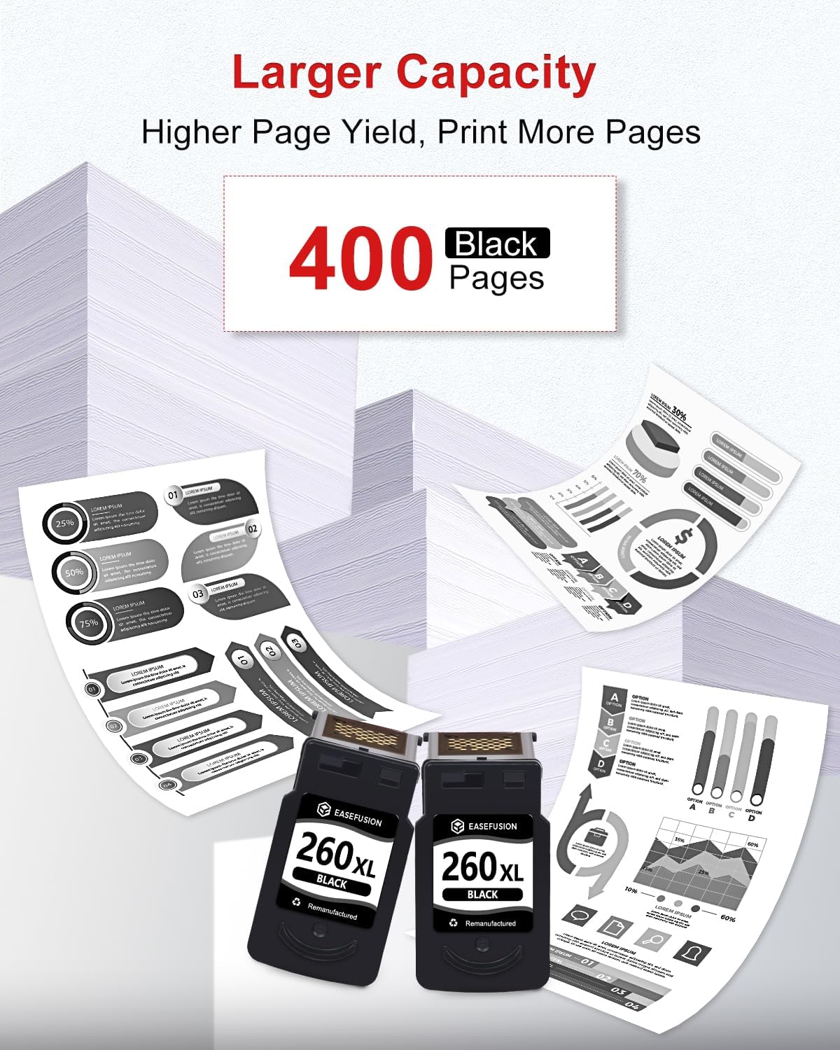 - Longer-lasting Prints: EaseFusion for canon ts6420 ink offers an impressive high page yield of at least 400 pages per pg-260xl black ink cartridge (based on 5% coverage of A4 paper). Get more printing without the need for frequent cartridge replacements