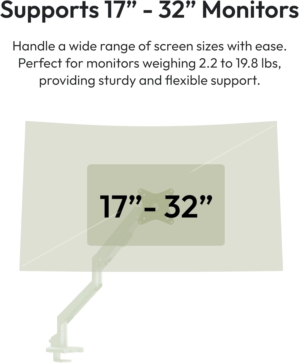 - Supports monitors up to 32 inches and 19.8 pounds: Accommodates a wide variety of monitors for a perfect fit. The VESA plate accommodates 75x75mm and 100x100mm mounting patterns.