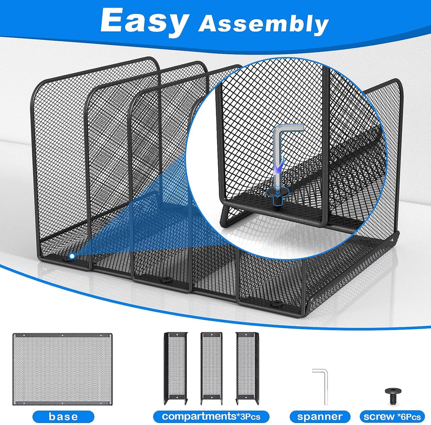 - Upright mesh file organizer for desk,extremely stable,strong construction,anti-pilling,rust prevention,anti-scratch frosted baking paint