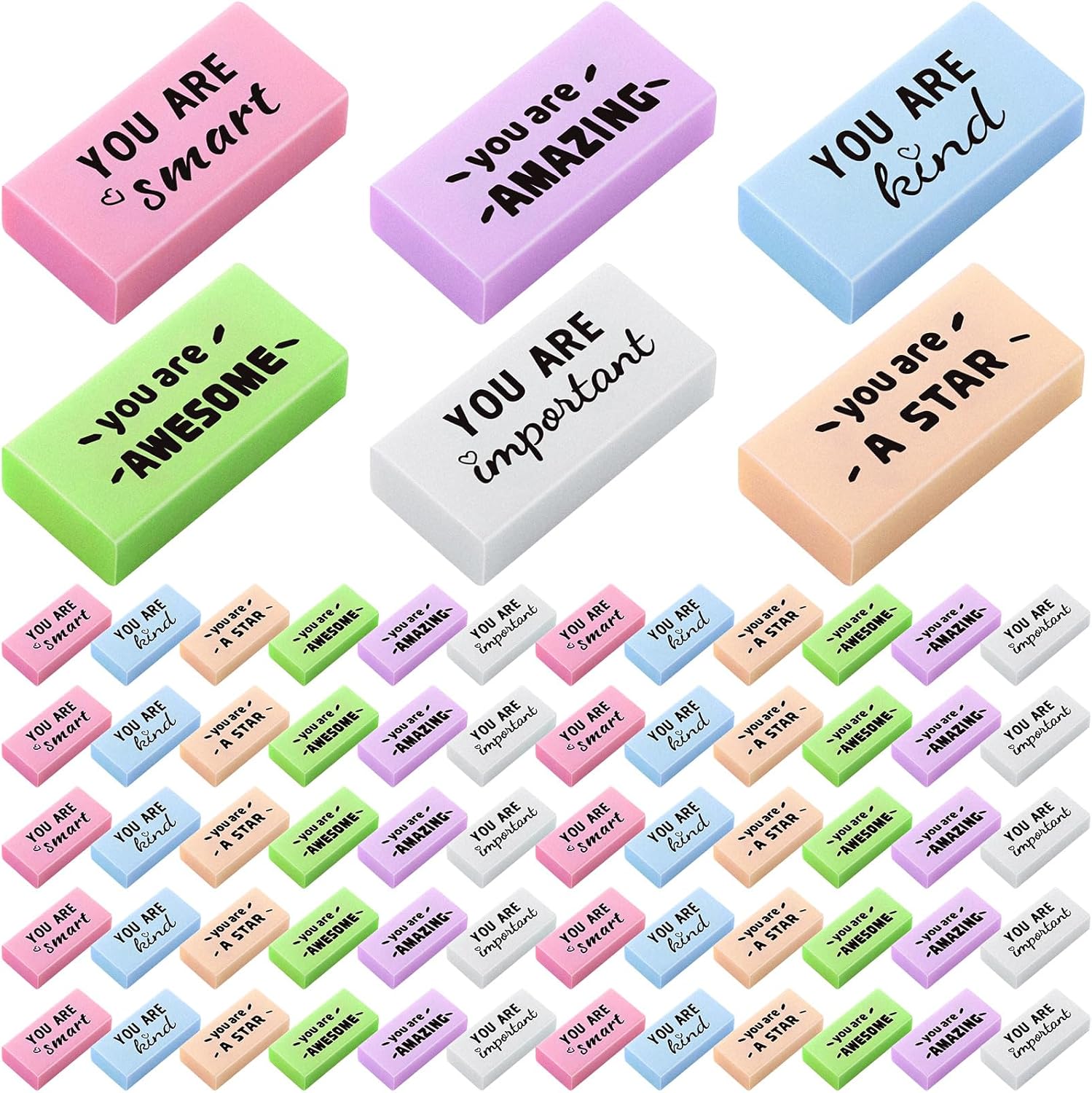 - Generous Packaging: the package includes 180 inspirational erasers bulk, ensuring that you never run out; Whether for personal use or a classroom setting, this bulk printed with 6 different motivational designs, satisfying all your erasing needs for a long time