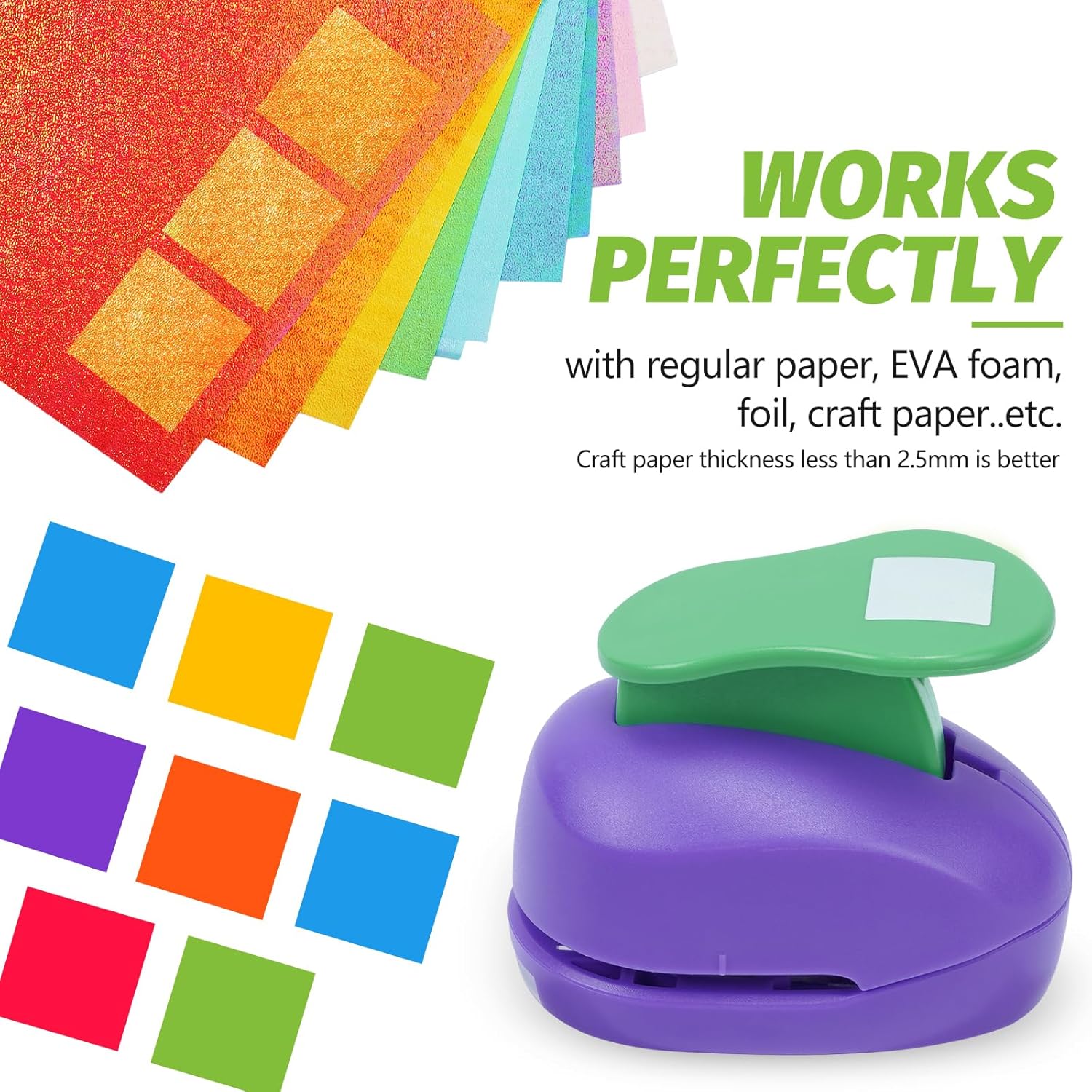- Wide Applications: The 1 inch square paper punch for crafts is simple to use and will make crisp, good for kids DIY artwork, gift wrapping, envelopes, memory books, greeting cards, gift tags, scrapbooks, cards, decorations, and any paper craft.