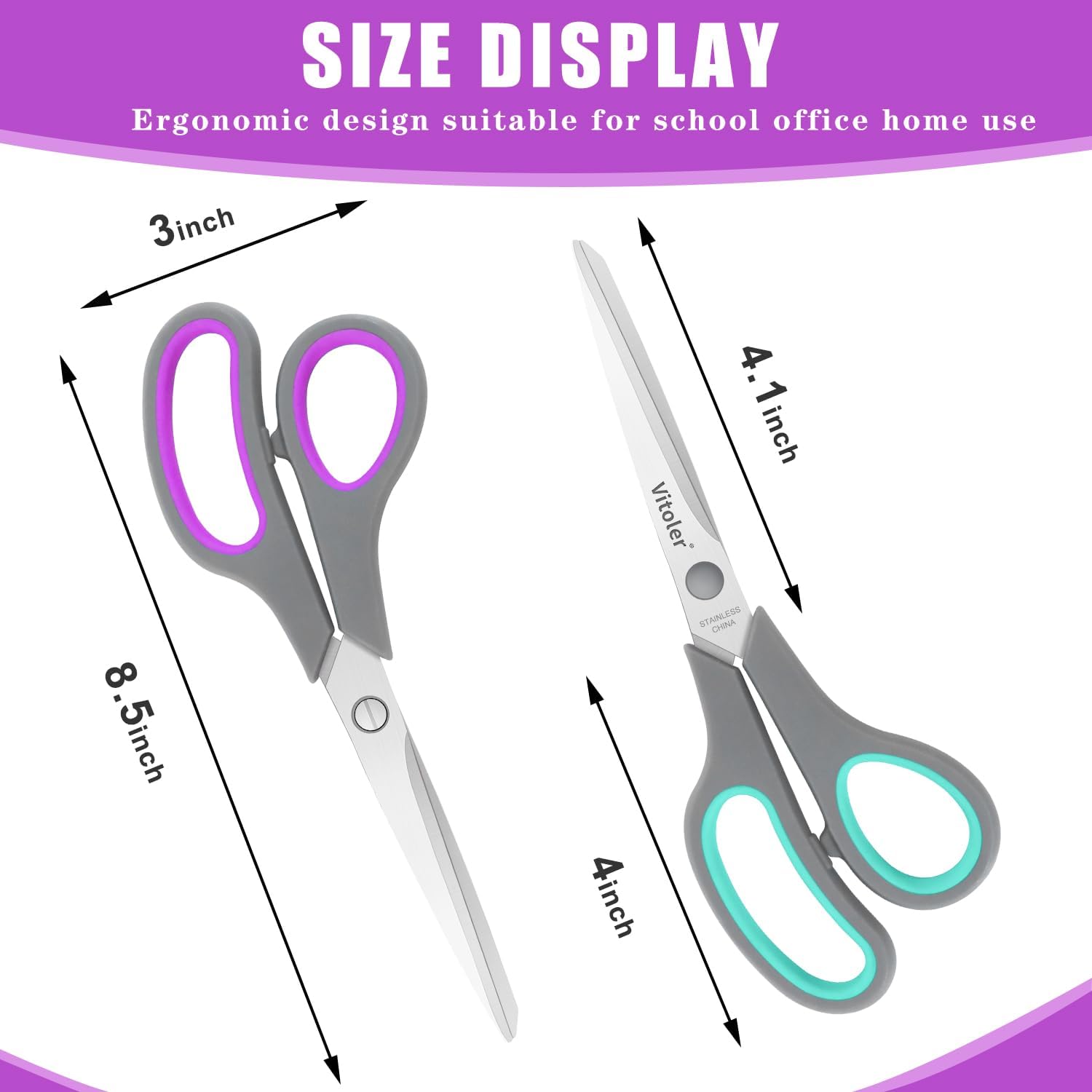 - Scissors All Purpose Comfortable Grip: The vitoler scissors are lightweight with rubberized handles for an easy grip, reducing hand fatigue when you use them for long periods of time, ensuring that everyone can handle and use these scissors with ease, making them a must-have school scissors for kids age 8-12