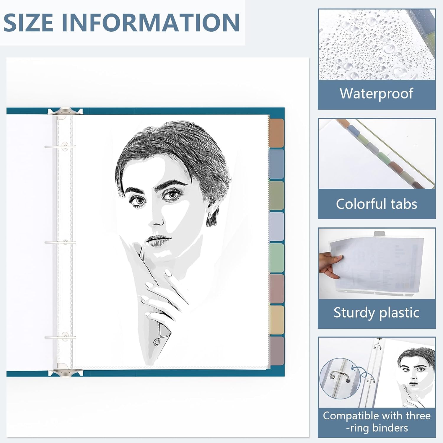 - Binder Dividers Size: Measuring approximately 11.22 x 9.4 inches (28.5 x 32.88 cm), each page divider is specifically designed to accommodate standard 8.5 x 11 inch letter-sized paper. This size is compatible with most 3 ring binders, allowing seamless integration into your existing organization system. Ideal for organizing reports, manuals, school assignments, and more.