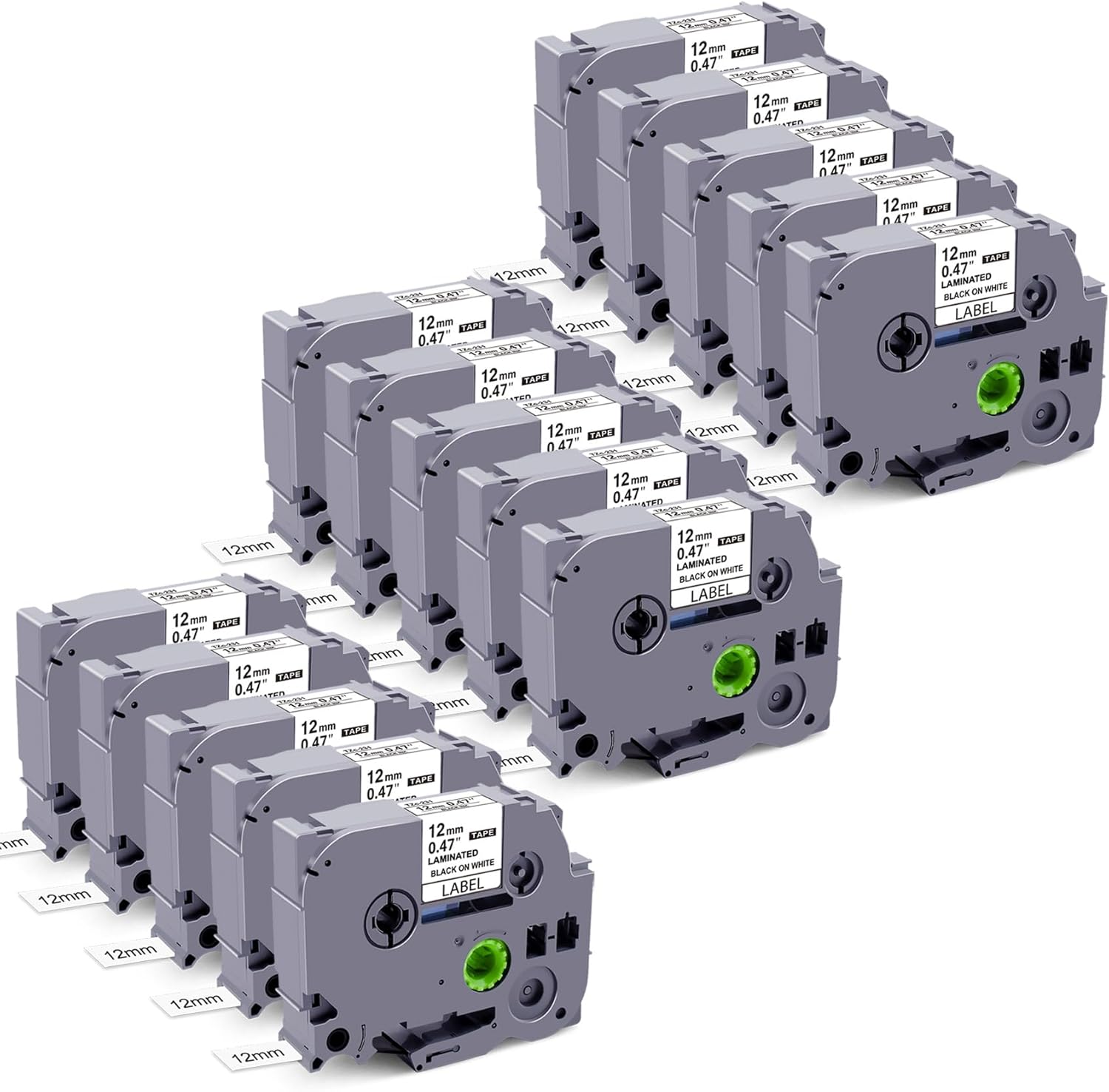 15Pack TZe TZ Tape 12mm 0.47 Laminated White Replacement for Brother P-Touch TZe-231 TZC-231 Label Maker Tape Compatible with Brother Label Maker PT-D210 PT-D220 PT-H110