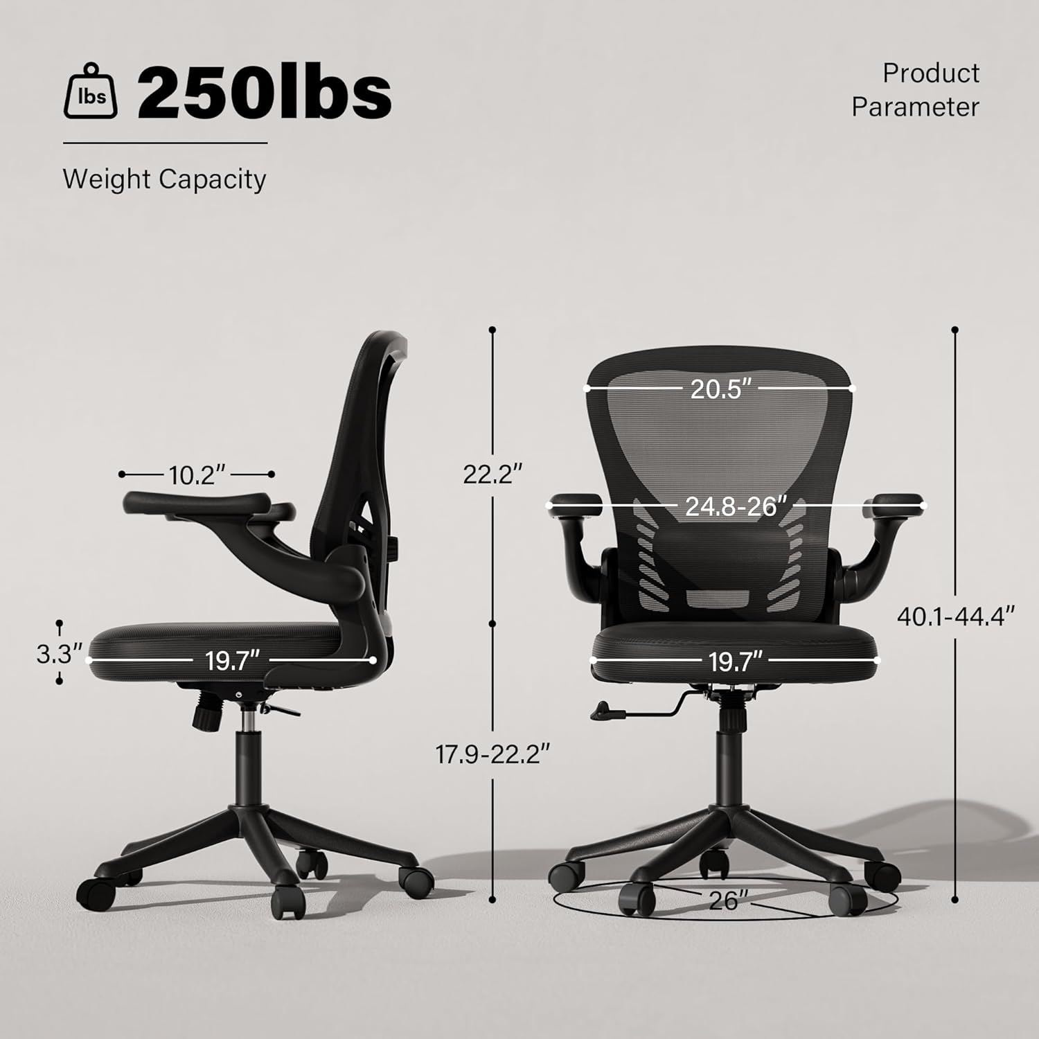 GYI Computer Desk Chair, Ergonomic Office Desk Chairs with Mesh Back, Adjustable Lumbar Support, Height, 3D Flip-up Arms, Wheels, Rocking Function, Black