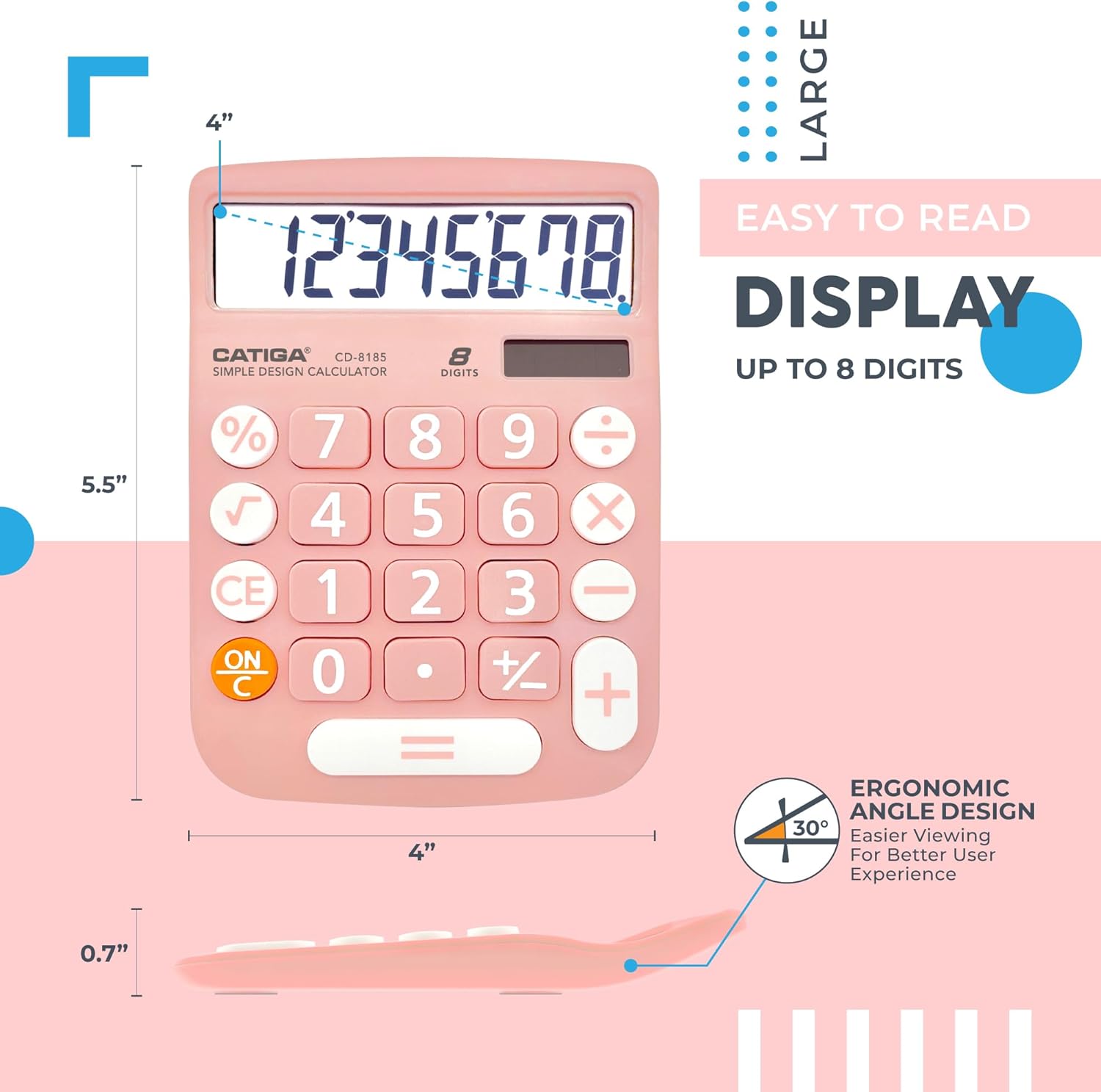 CATIGA Desktop Calculator 8 Digit with Solar Power and LCD Display, Big Buttons, for Home, Office, School, Class and Business, 4 Function Small Basic Calculators for Desk, CD-8185