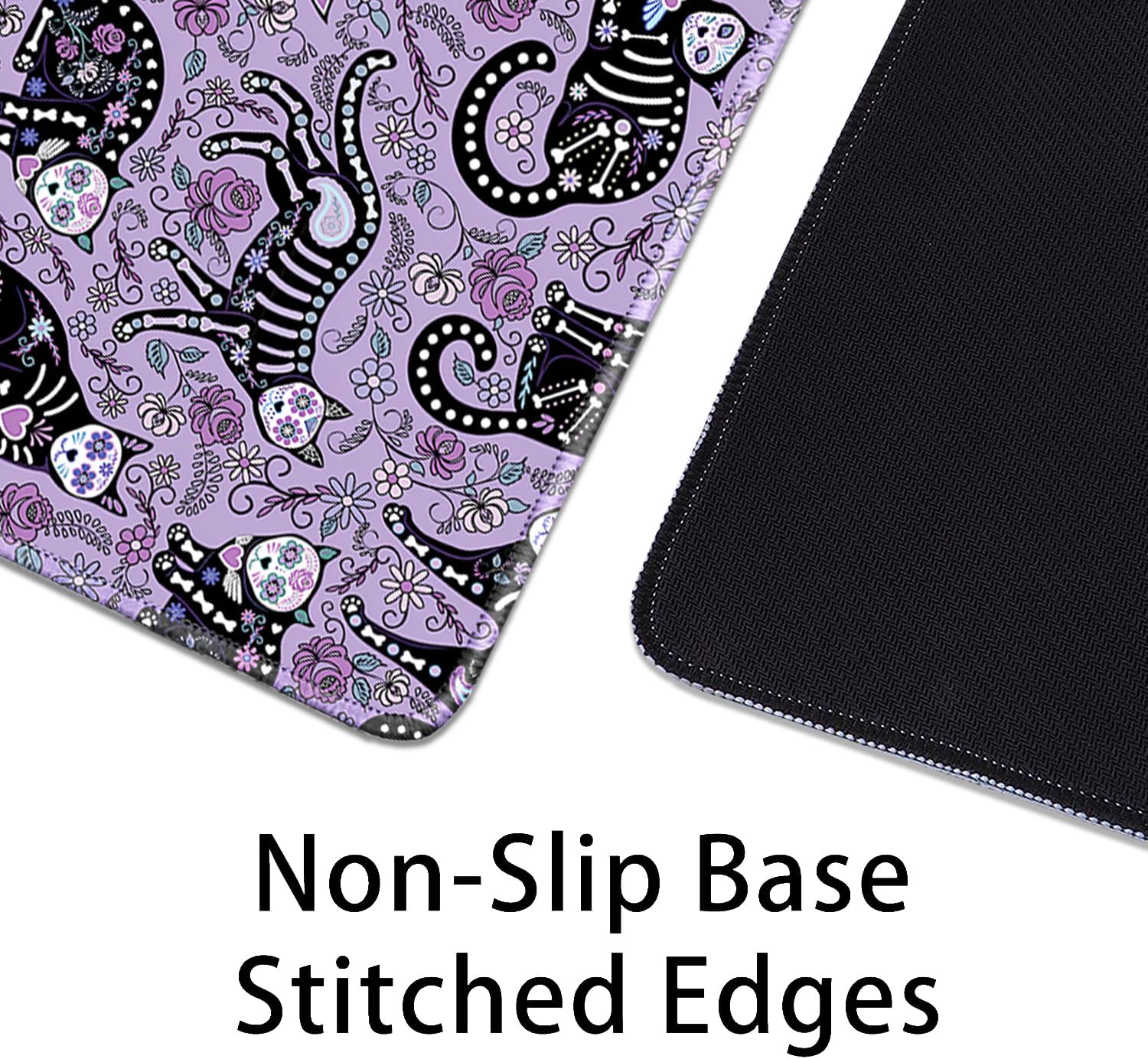Gothic Cat Skeleton Flowers Mouse Pad,Extended Cat and Floral Mousepad Desk Pad with Stitched Edges,Non-Slip Waterproof Rubber Base Mouse Mat for Office Computer Keyboard Laptop Home(27.5x11.8 in)