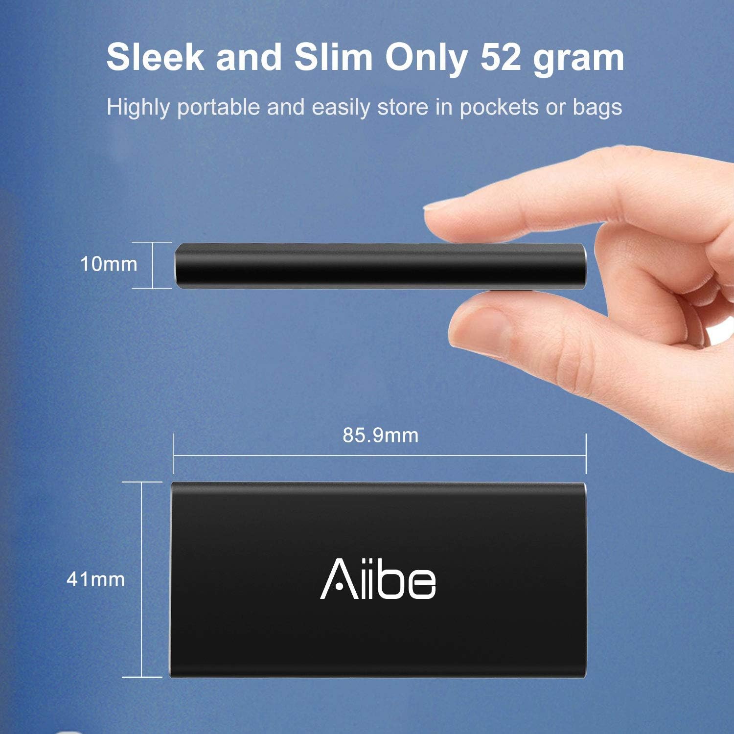 - Portable & High Quality: The portable ssd is very ultra-slim, lightweight and palm-sized, and easy to carry around with you; metal-made ssd casing makes it most solid and durable, safe and reliable