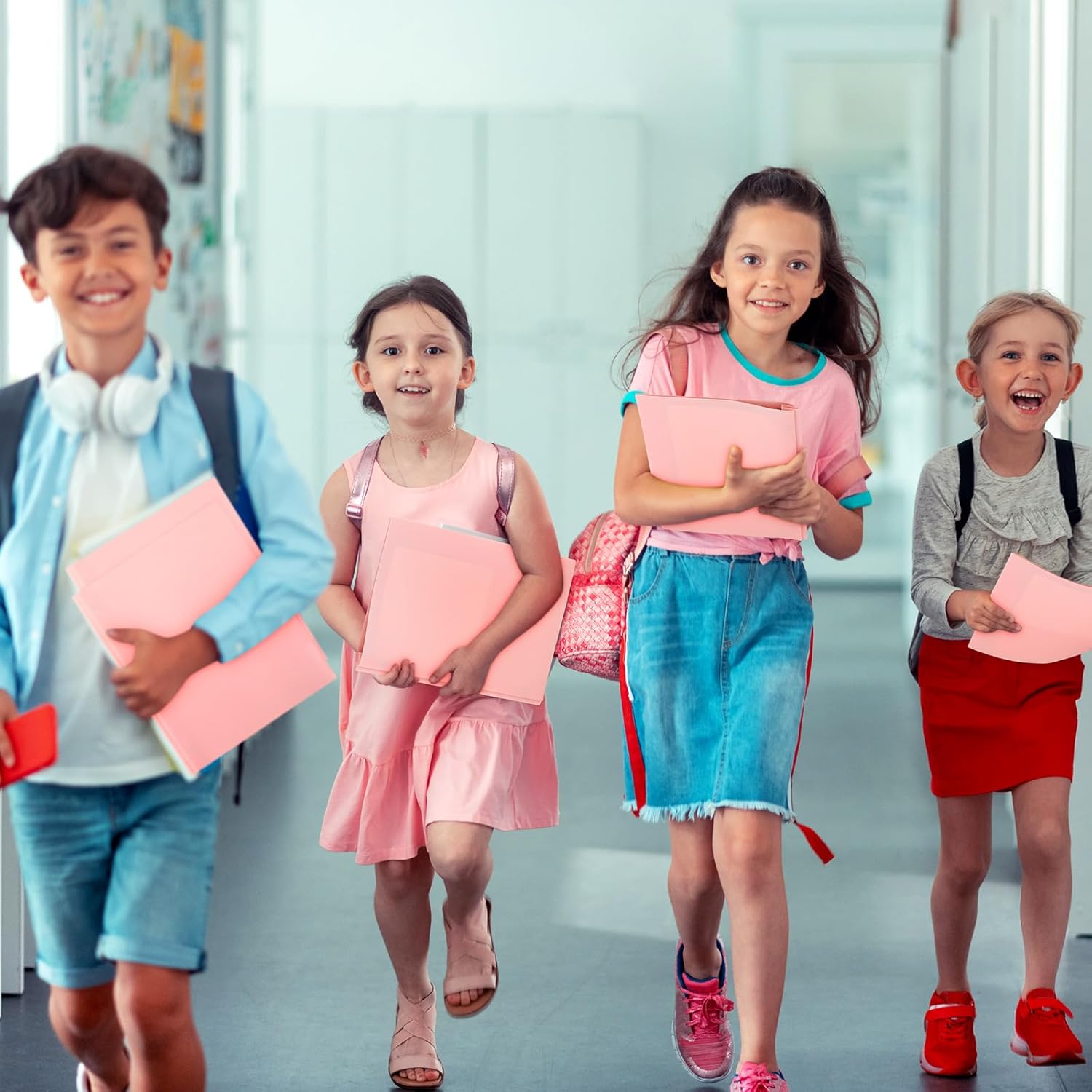 Patelai 48 Pcs Plastic Folders with 2 Pockets and 3 Prongs Home Folders with Card Slot Letter Size Heavy Duty Report Covers for Back to School(Pink,Classic)