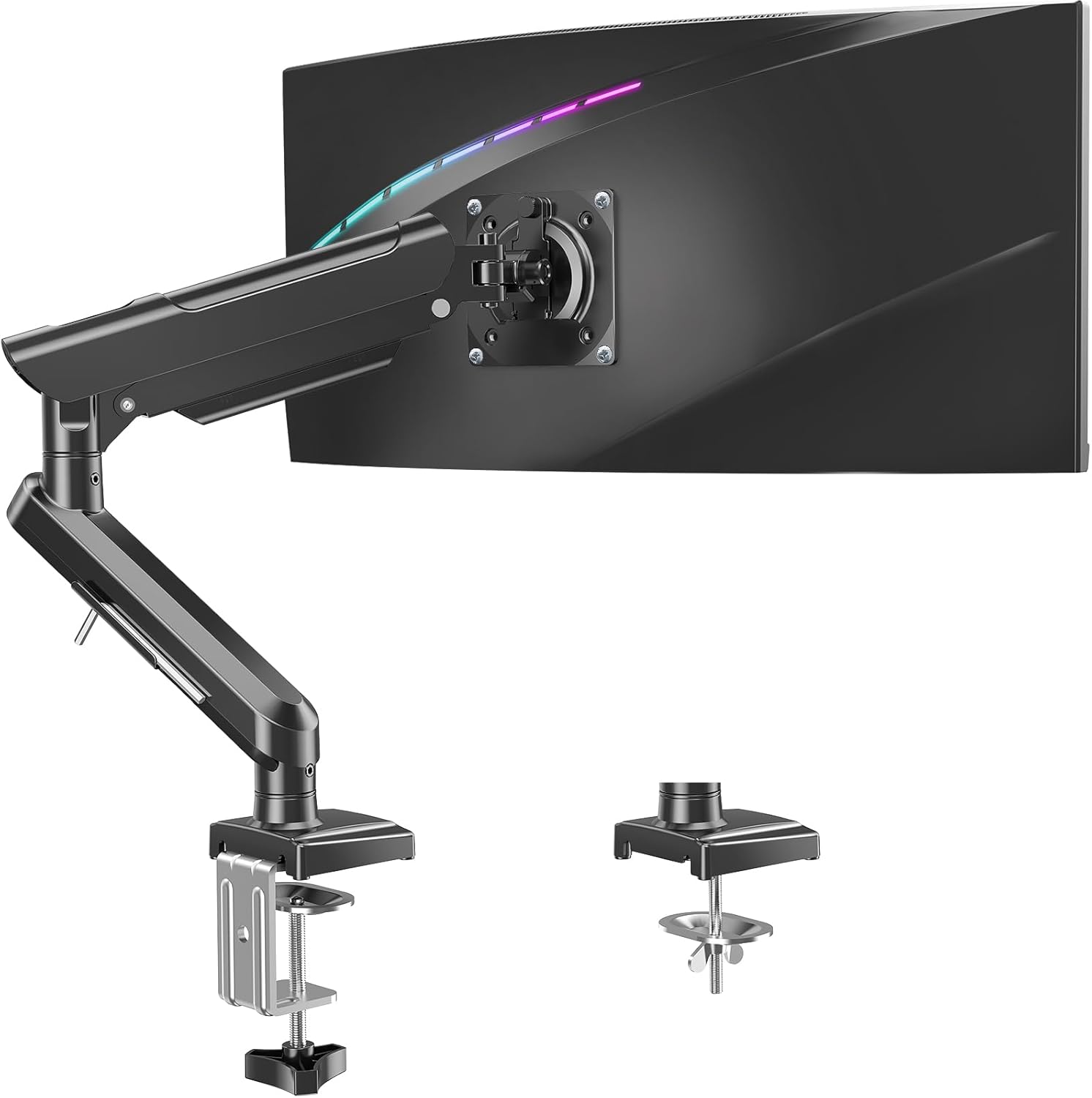 - Optimize Your Workspace: Our single arm monitor mount may free up 80% more desktop space than a desk monitor mount with a large base, giving you more room for other office supplies. The VESA monitor mount has built-in cable management to keep your cords organized and out of sight. And the lower arm conveniently stores Allen keys for future use. Now your workspace is clean and organized!