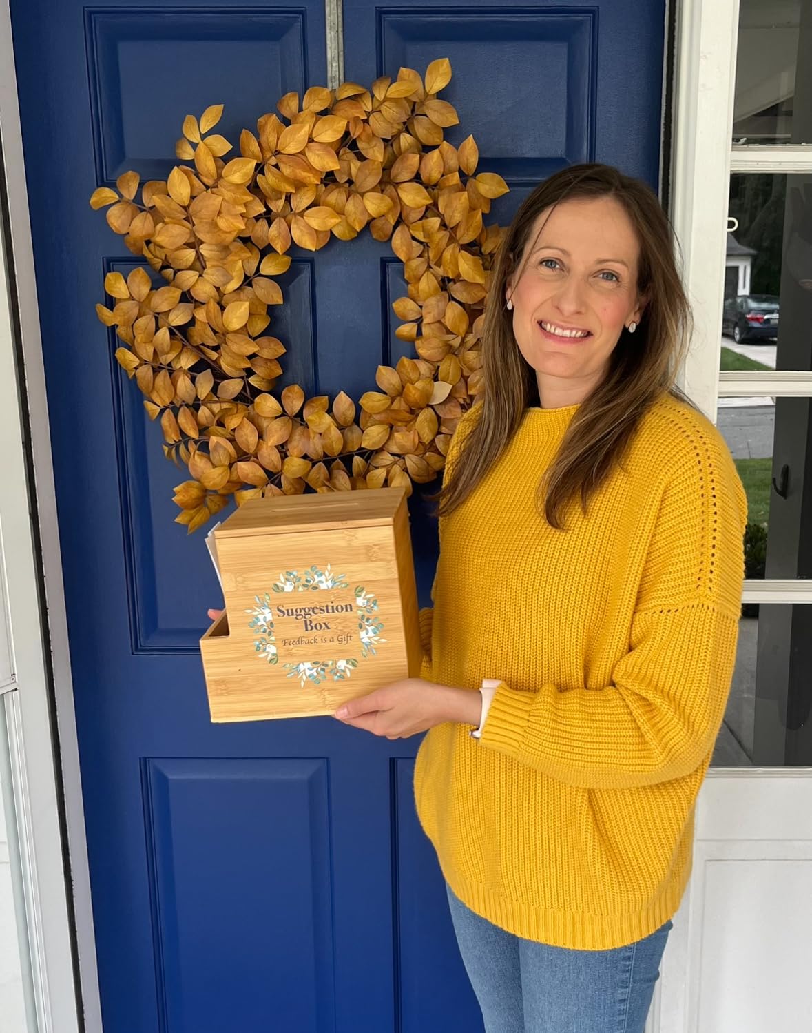 - STUNNING DESIGN: Perfect for Teachers and Classrooms, Medical Staff and Their Patients: Our wooden card boxes feature a stunning floral design and the positive affirmation “Feedback is a Gift,” bringing warmth and light to any space. A statement piece and invitation to collaborate, our wedding card box can be used as ballot boxes, donation boxes, voting boxes, prayer request boxes or offering box. Add your personalized suggestion cards or offering envelopes - the most unique suggestion boxes on Amazon! *Note that suggestion cards are not included.