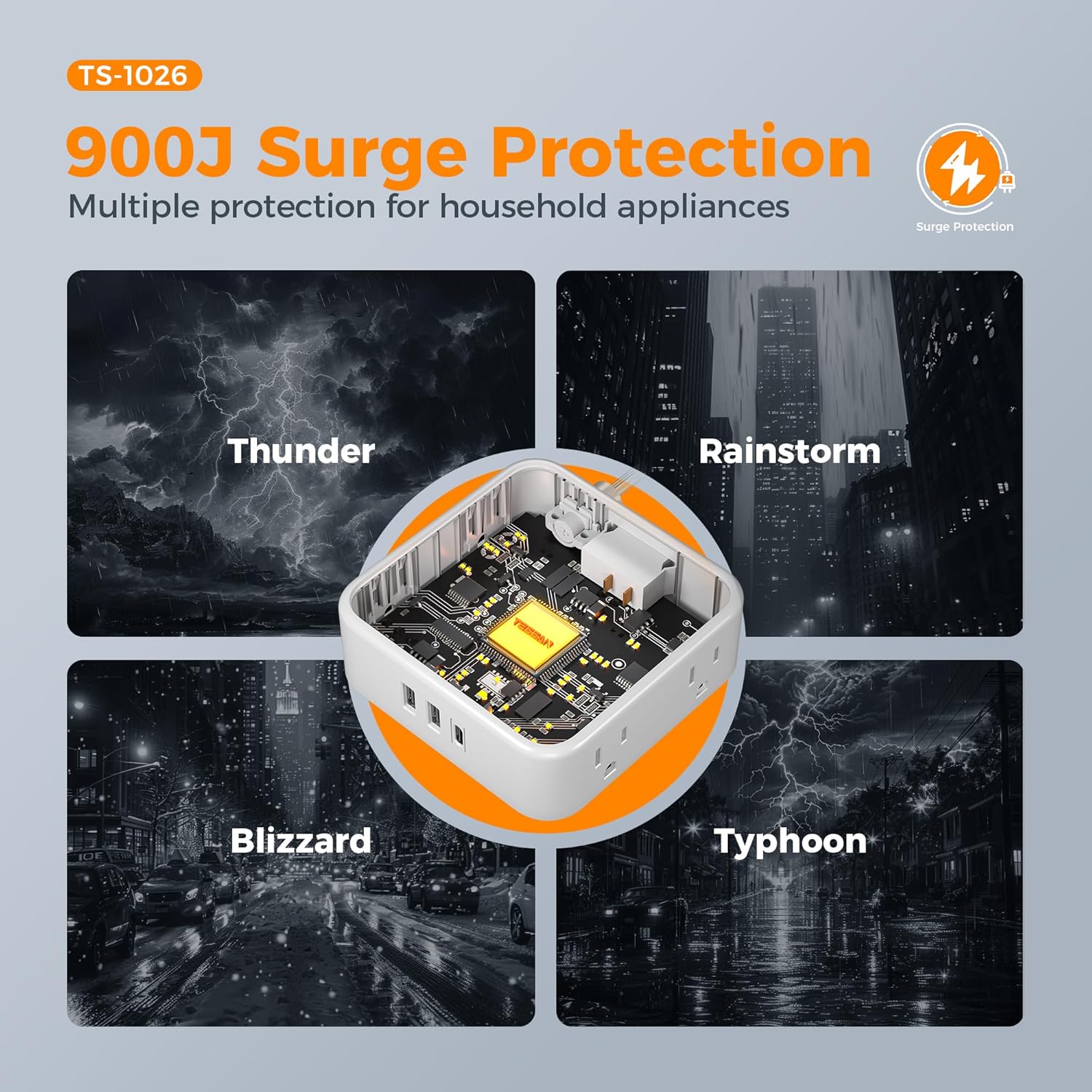 - 900J Surge Protector Outlet: Equipped with overload protection, short circuit protection; On/Off switch can automatically shut off to protect your electronics; Power strips with surge protection providing you with a safe and reliable charging environment