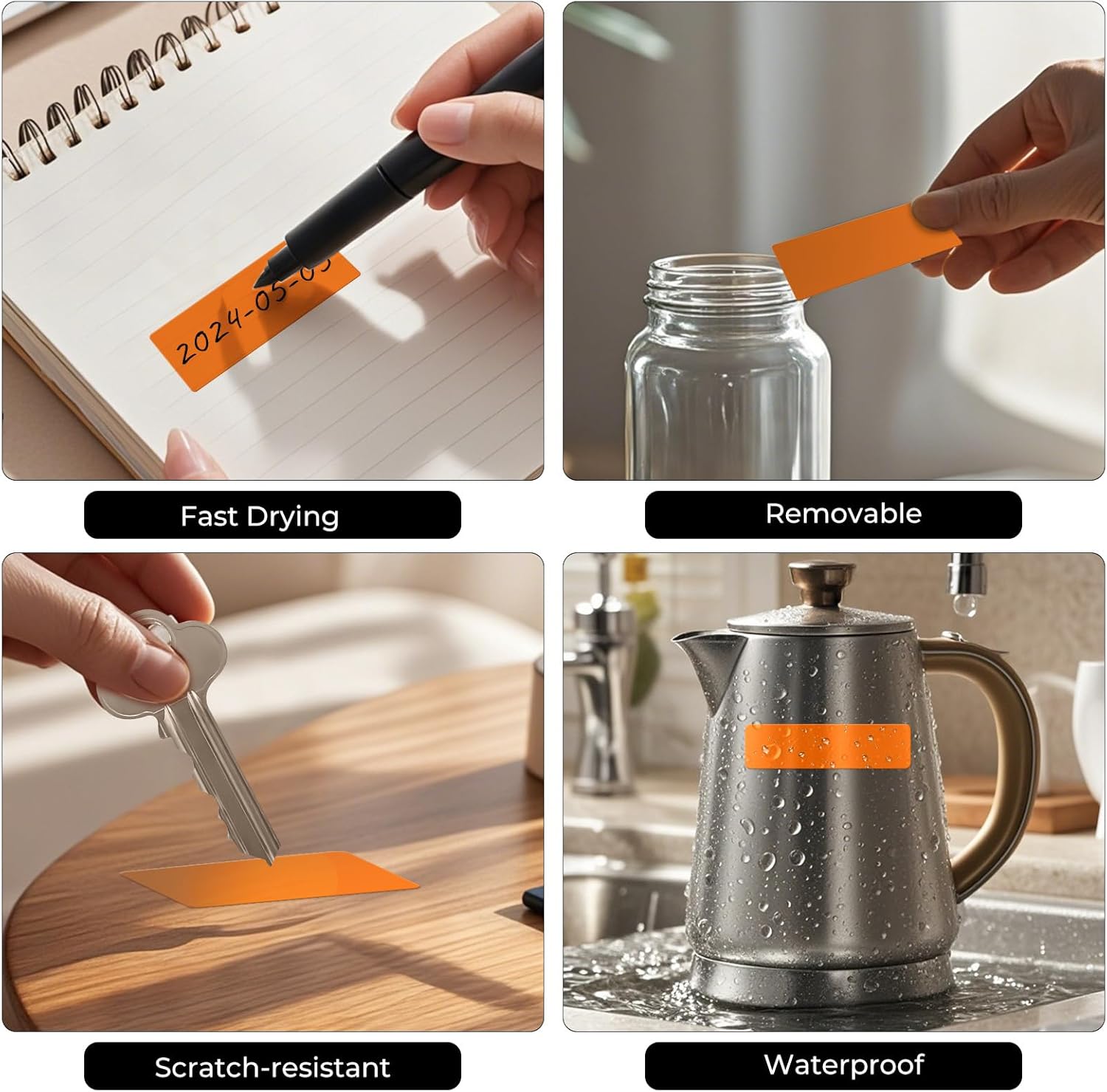 - Waterproof: The stickers are also resistant to water, making them suitable for use in wet environments such as bathrooms and kitchens. The rectangle labels also can easily write with marker pen.