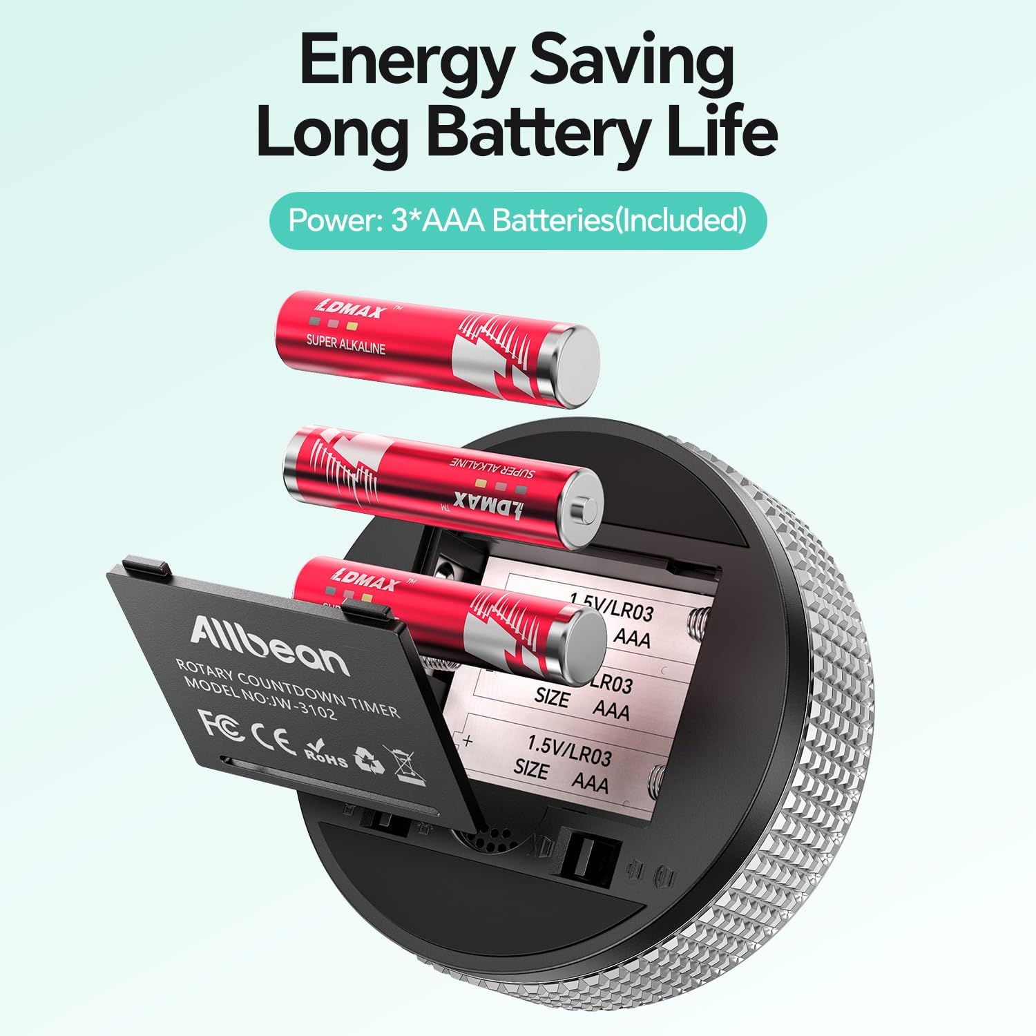 - 【Long Battery Life】: Powered by 3 AAA batteries (Included with package). Pomodoro timer with energy saving function, if timer doesn't run and without any operation, display brightness will turn dim then light off in a few seconds. Will not consume energy in the sleep mode. Allbean Visual timer has full year quality guarantee and detailed instructions manual. (kitchen timer appearance: plastic, non-metallic)