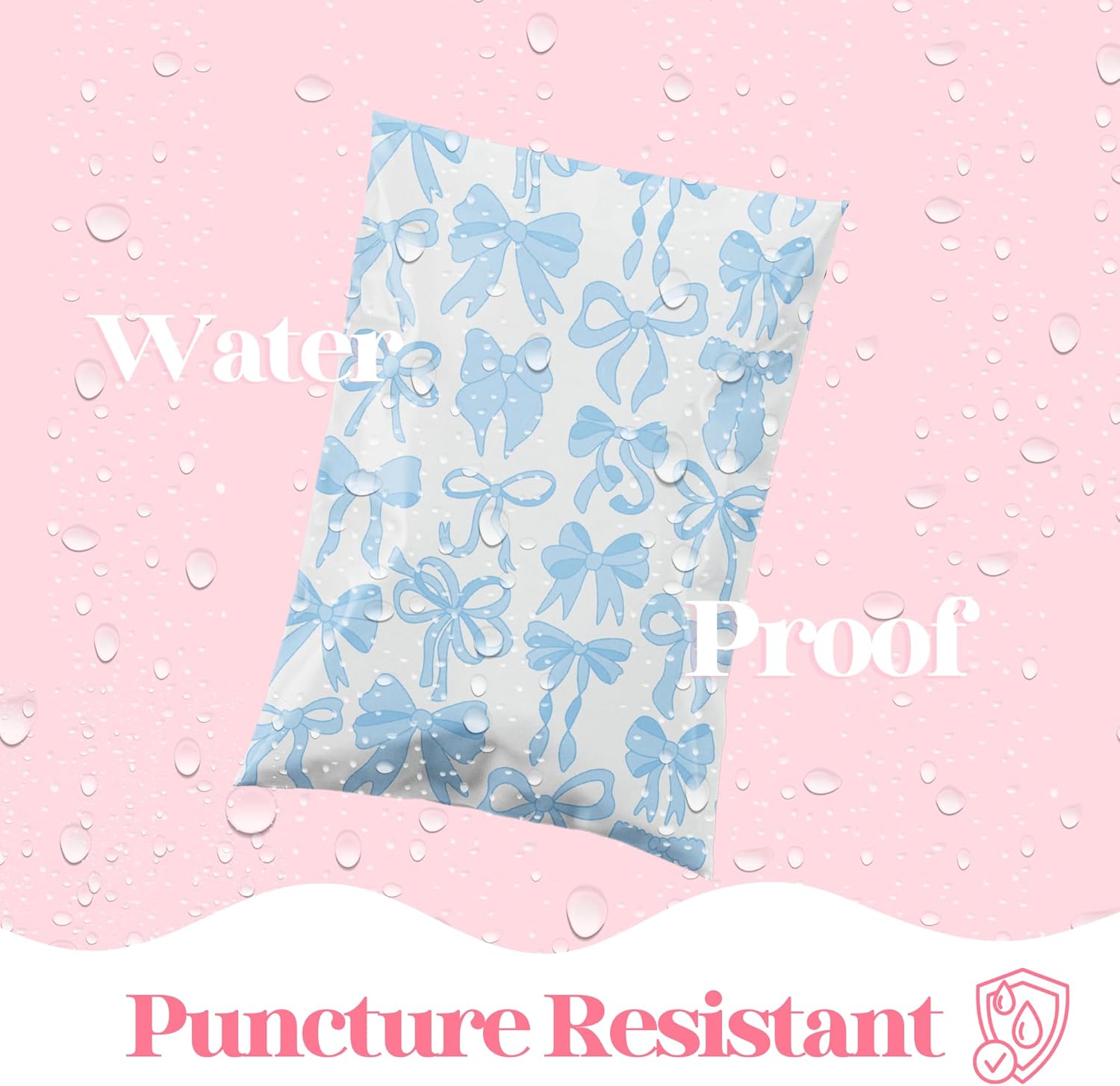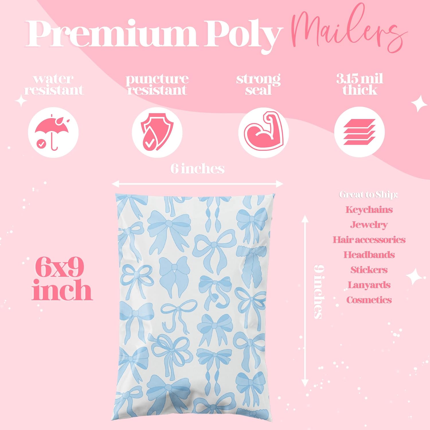 6x9 Designer Poly Mailer 100 Pack Heavy Duty Waterproof Self Seal Shipping Bags for Small Business Large Mailing Envelopes Bulk Tear Resistant Packaging Blue Bows