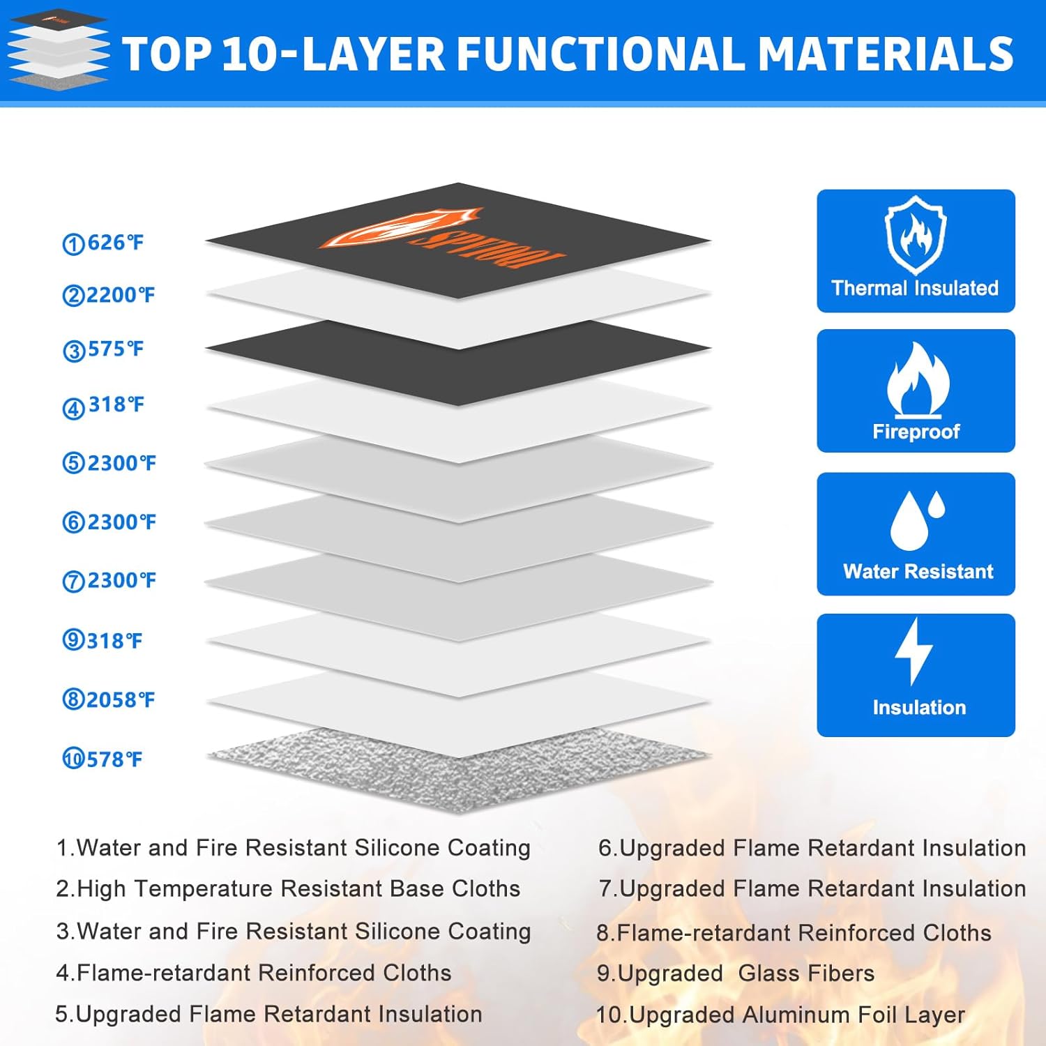 - Special Feature : 10 Layer Protection, Fireproof, Lockable, Reflective Strip, Water Resistant