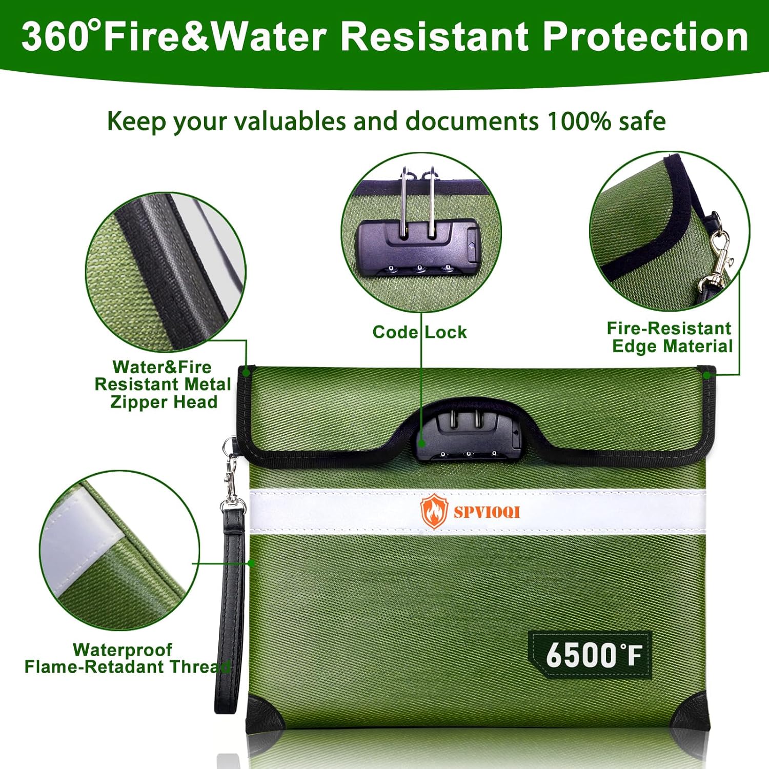 - 360° FIREPROOF DESIGN: This SPVIOQI fireproof document bag mainly adopt a 10-layer function material structure of fire protection and heat insulated; The fireproof money bag for cash is sewn with flame-retardant thread and fireproof hemming, to prevent fire from damaging the fireproof bag from the edge, closure by velcro flap, so that its zipper completely prevent fire, which make the fire proof money bag for cash 360° fire resistant