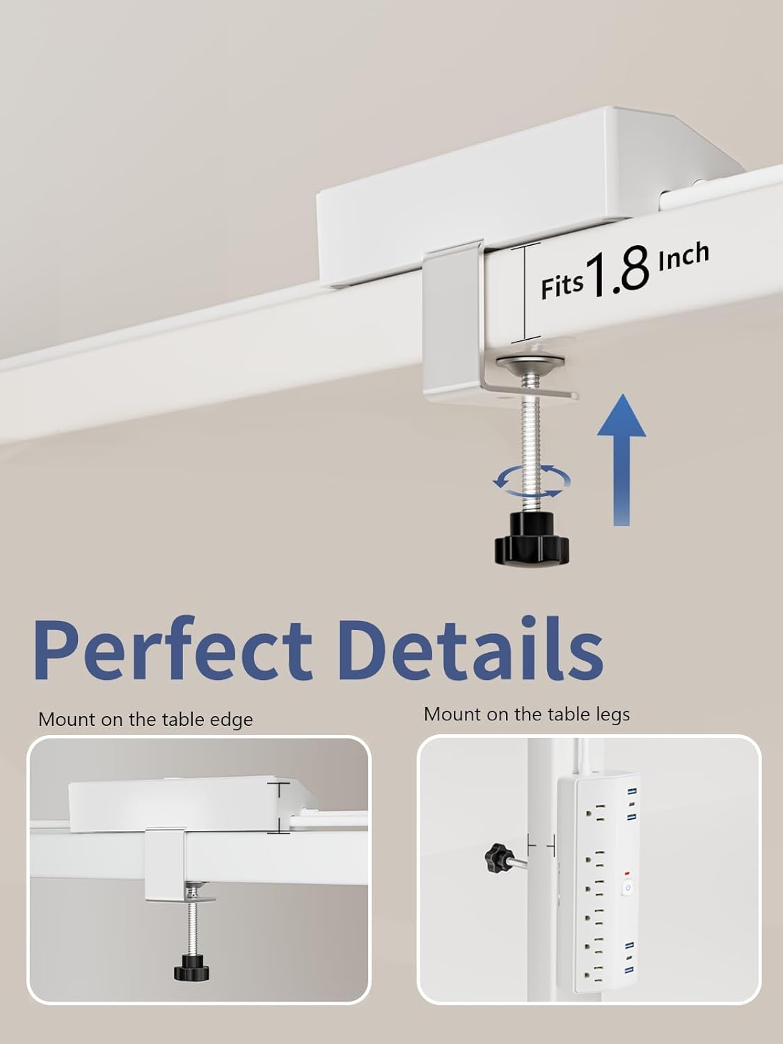 - 【Easy to install】- Desktop surge protector power strip with USB ports is very easy to mount, you don't need to drill holes or purchase any additional tools, just fix the clamp to the table, and turn the button at the bottom to complete the installation. (Features a 180-degree swivel clip that fits desks up to 1.8 inches thick.)