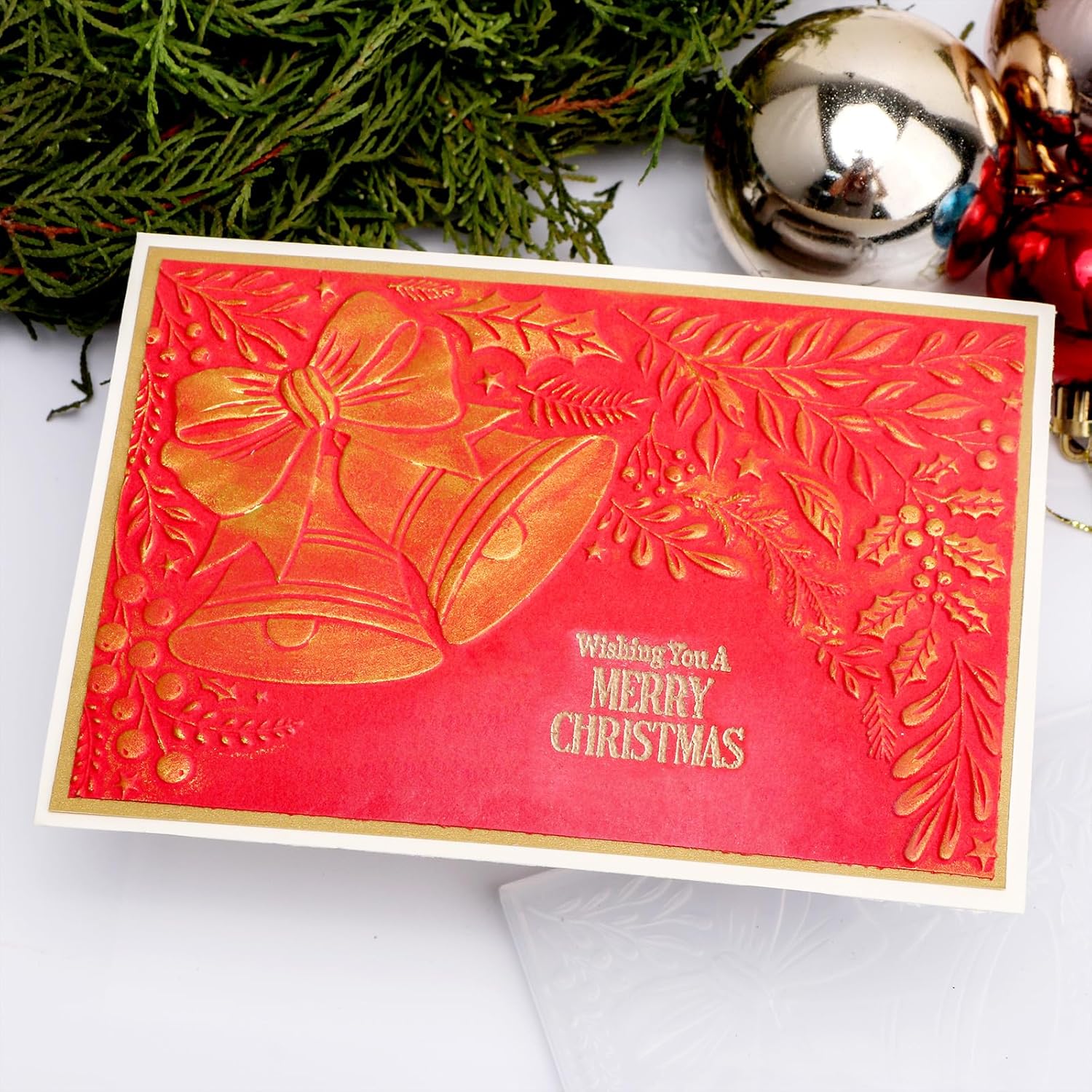 BAOFALI 3D Embossing Folder for Card Making,Bow Tied on The Bell Clear Plastic Texture Fades Embossing Folder Template for Scrapbooking and Other Paper Craft Album Stamps DIY Decoration