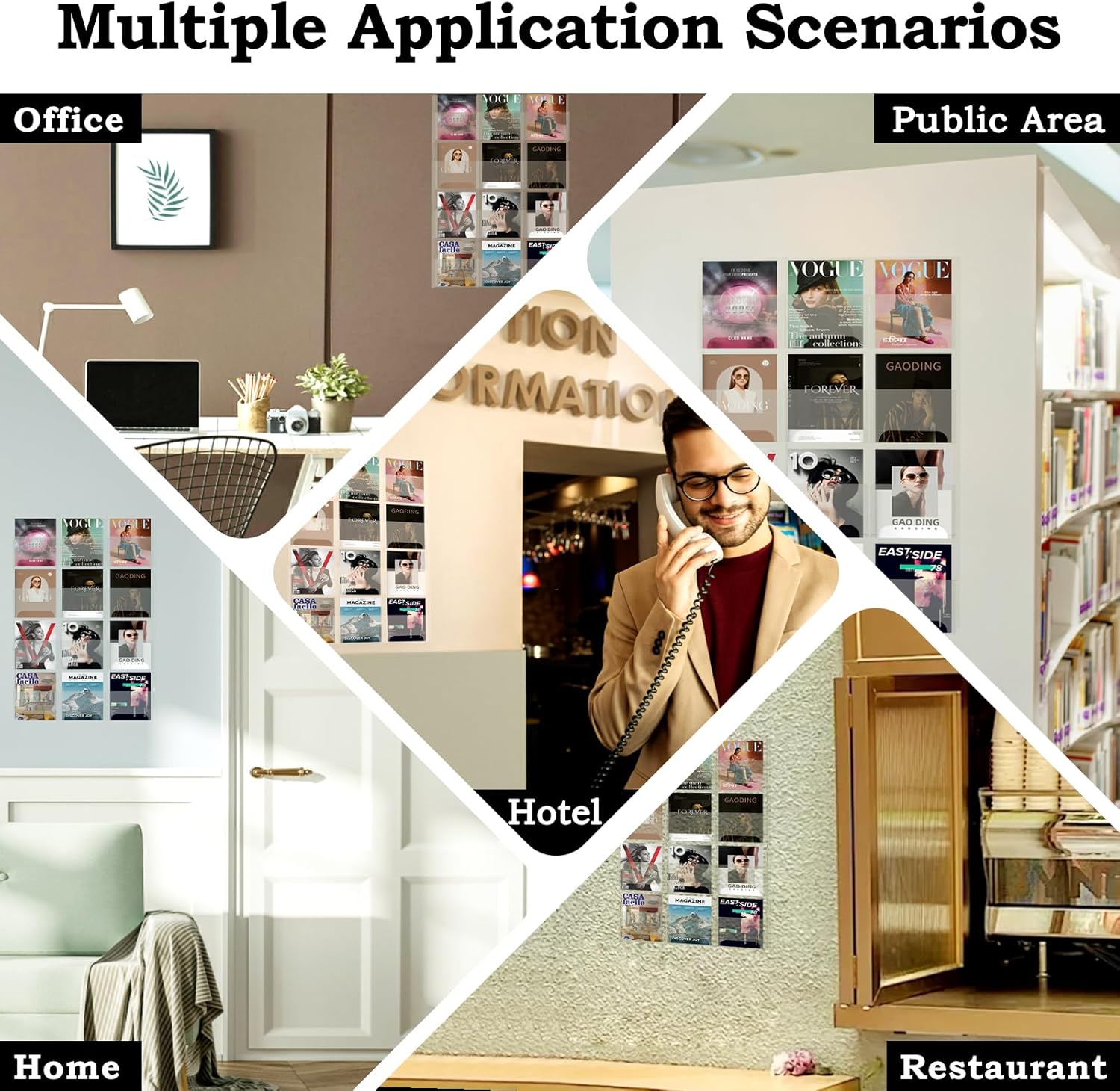 - Versatile Application: This brochure holder is perfect for organizing and displaying flyers, documents, bills, cards, postcards, menus, booklets, and brochures, making it suitable for various office settings; Warm reminder: Please remove the protective film on the front and back before use