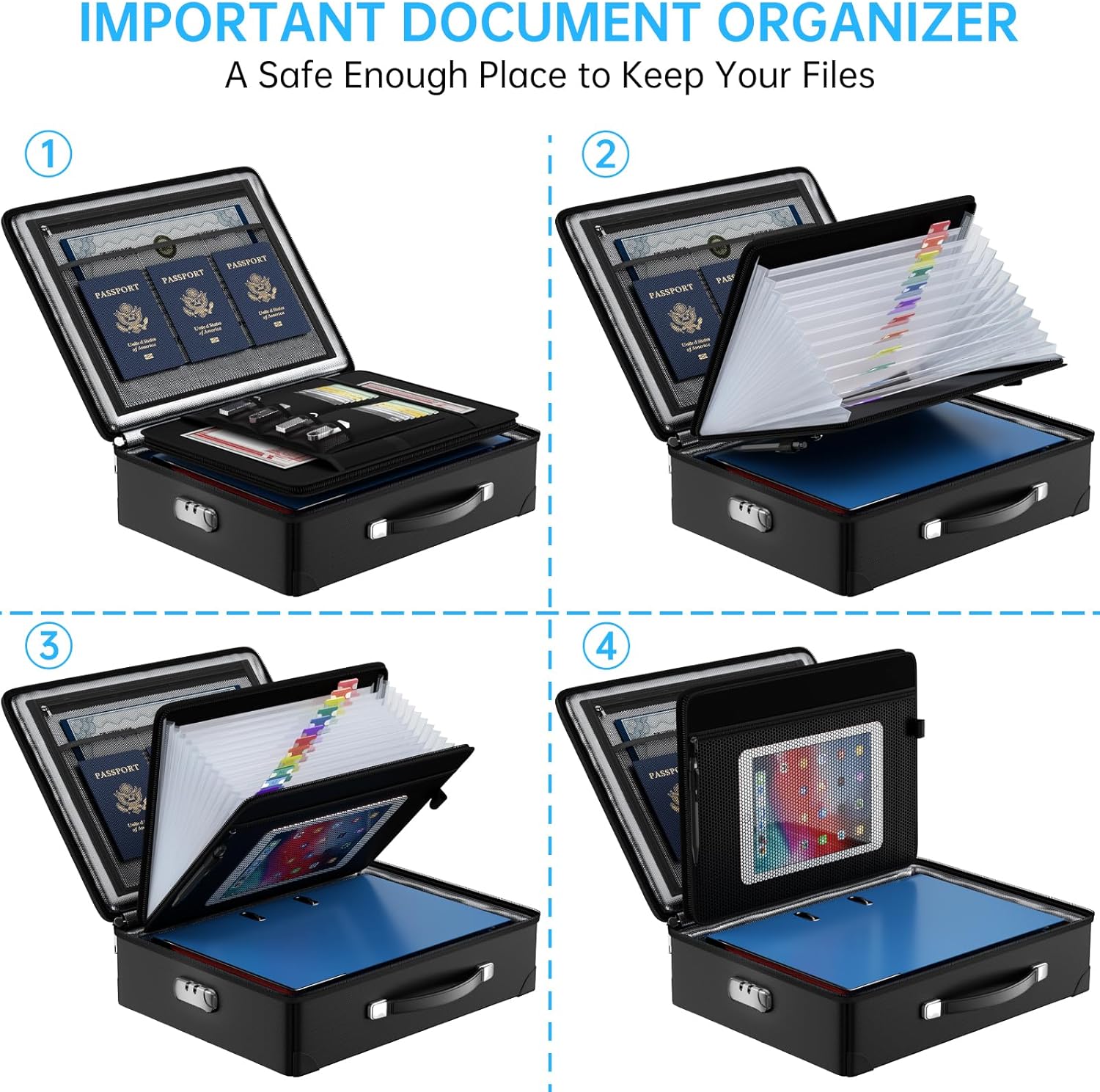 - Safety Combination Lock Design: Our fireproof document box is equipped with a password lock that provides protection for your documents, including contracts, cards, certificates, meeting materials, laptops, and passports. It blends well with any office, court or home setup and would be perfect for an officer or construction supervisor working in and out of their vehicle
