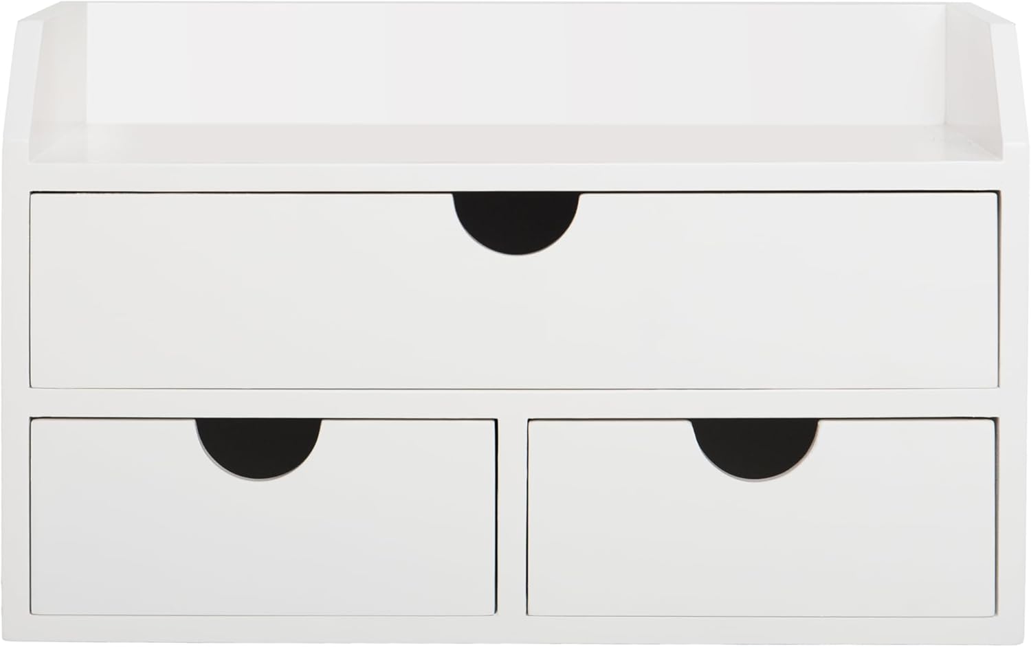 - 3 Spacious Drawers: Store your pens, notepads, paper clips, and other essential office supplies in the well-designed compartments. Each drawer glides smoothly for easy access. Product size is W13” x D6.7” x H7.9”