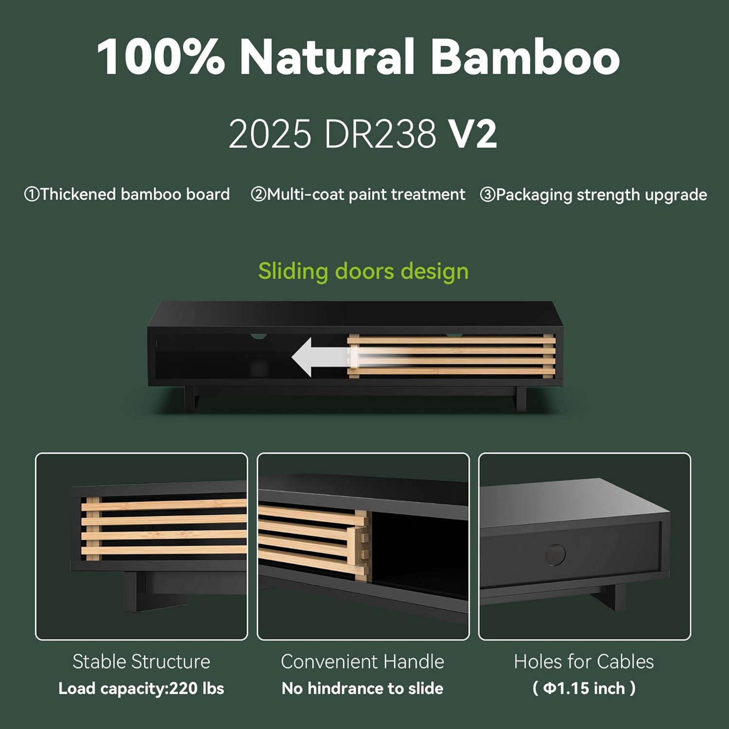 - 【Premium Bamboo+Engineered Wood】Eco-friendly solid bamboo with natural grain, no chemical treatment. Engineered wood, multi-layer spray paint on the surface.Moisture-resistant & warp-proof, holds up to 220lbs